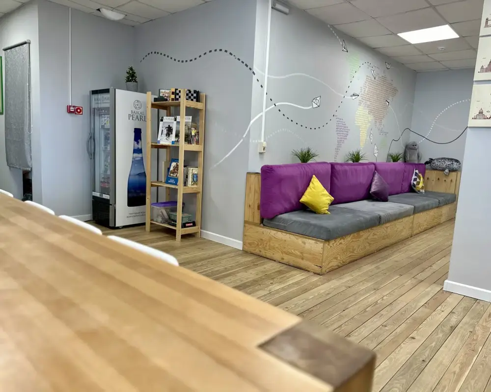 Наших гостей приятно удивит наличие просторной кухни и общей зоны отдыха. Администраторы встречают посетителей круглосуточно и всегда подскажут Вам интересные места для прогулок и посещений, ближайшие рестораны и кафе, а также помогут организовать поездку в поселок Листвянка или на остров Ольхон со скидкой. К Вашим услугам бесплатный Wi-Fi. Существует специальная зона хранения багажа. В зоне отдыха гости отеля могут отдохнуть, пообщаться, выпить чашку чая или кофе и поиграть в настольные игры. В зоне кухни имеются холодильник, микроволновая печь, тостер, термопот, мультиварка, яйцеварка, а также самая необходимая посуда.