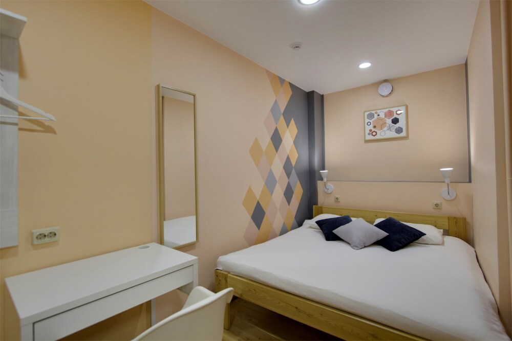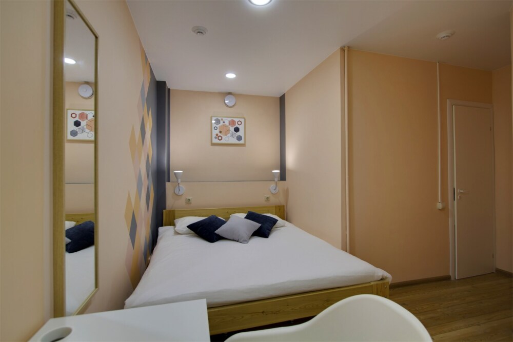 - Комфортные двухместные номера с ванными комнатами, удобными матрасами и качественной сантехникой.