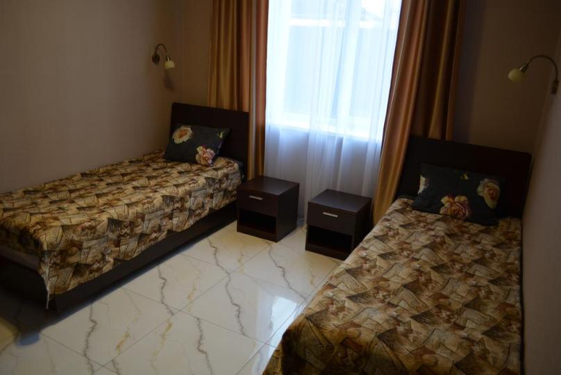 Комплектация номера: две односпальные кровати, платяной шкаф, тумбочки, туалетный столик, ЖК телевизор, кабельное ТВ, высокоскоростной Wi-Fi, чайник, фен, гигиенические принадлежности.