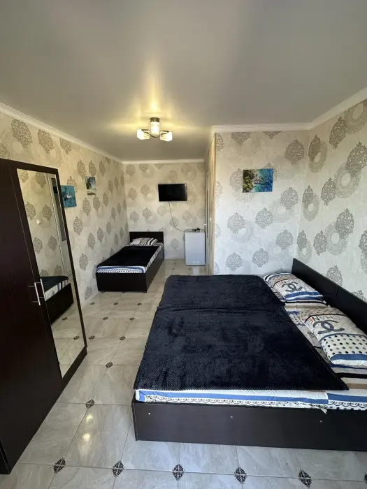 В звукоизолированных и комфортных номерах есть мебель, система кондиционирования, сейф и ванная.