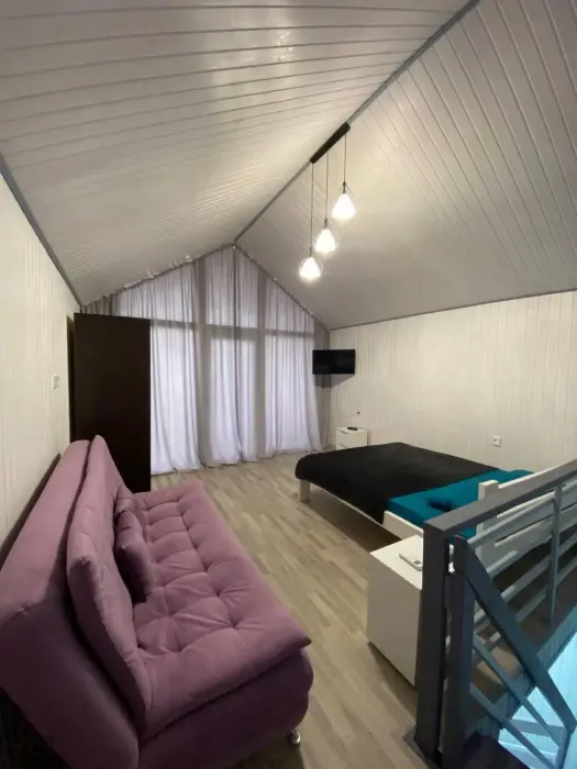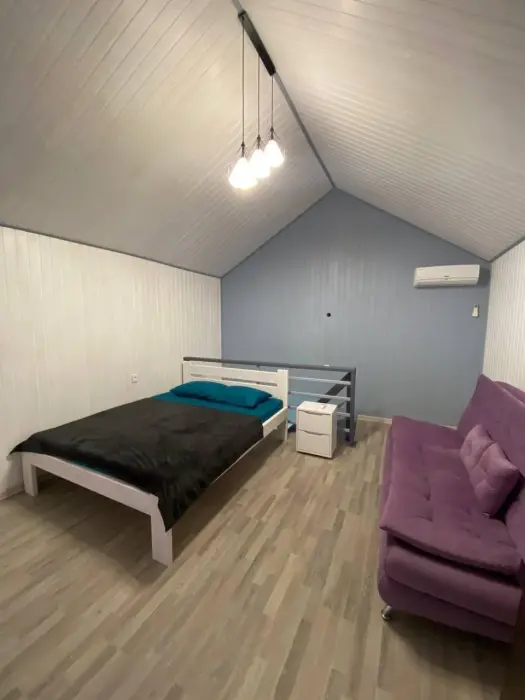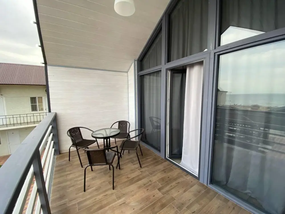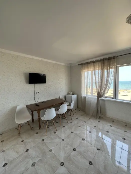 Двухэтажное бунгало с видом на море. Внутри есть собственная кухня: холодильник, микроволновая печь, чайник, электроплита, посуда для приготовления, обеденный стол. Собственная уборная комната: душ, туалет. На первом этаже диван-кровать, на втором этаже двуспальная кровать и диван-кровать, шкаф, кондиционер. Собственный выход на балкон с видом на море. Есть столик и стулья, чтобы встречать рассвет и провожать закат с чашечкой кофе.
