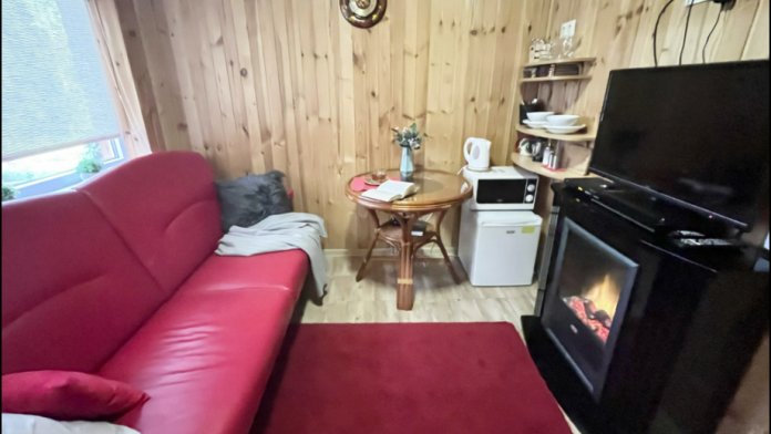 Шезлонги, батут, мангал, дрова, шампура, решетка, постельное белье, посуда, столовые приборы, махровые полотенца, одноразовые тапочки, принадлежности для душа предоставляются бесплатно. В комнате доступно: СВЧ-печь, электрический чайник, стол, стулья, мини-холодильник, телевизор, приставка Триколор ТВ, раскладной диван, электрический камин. Душ в комнате.