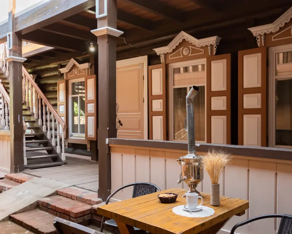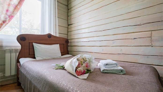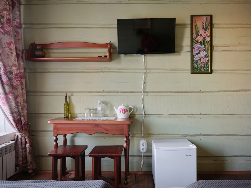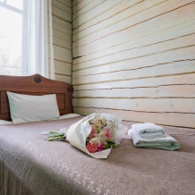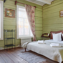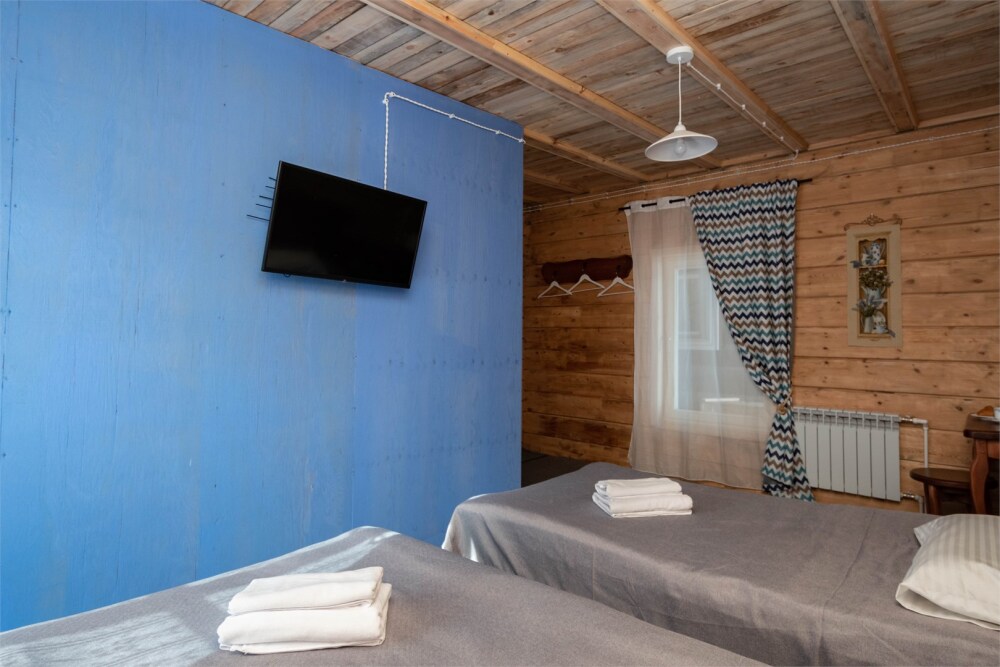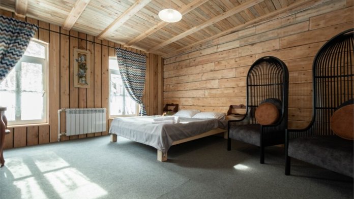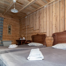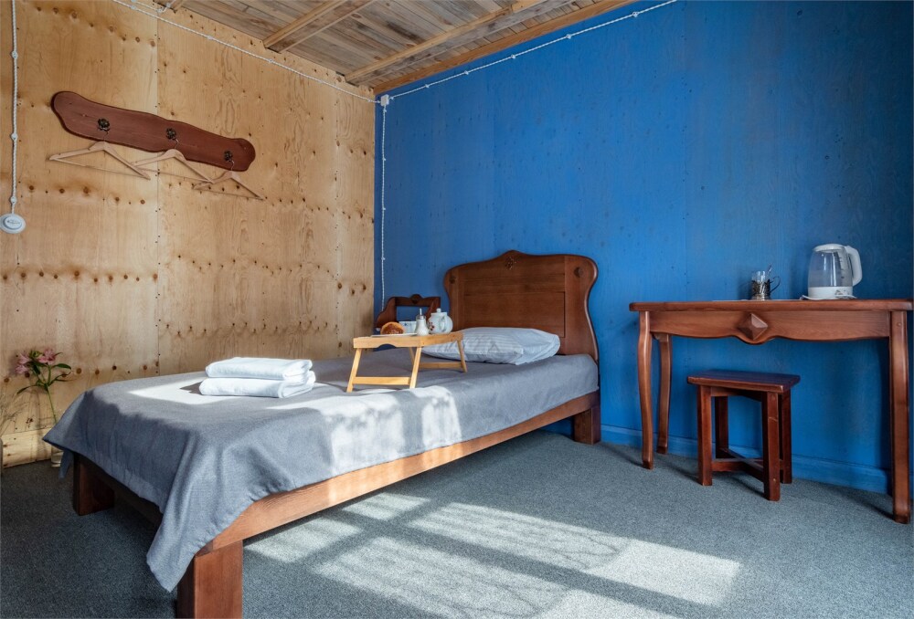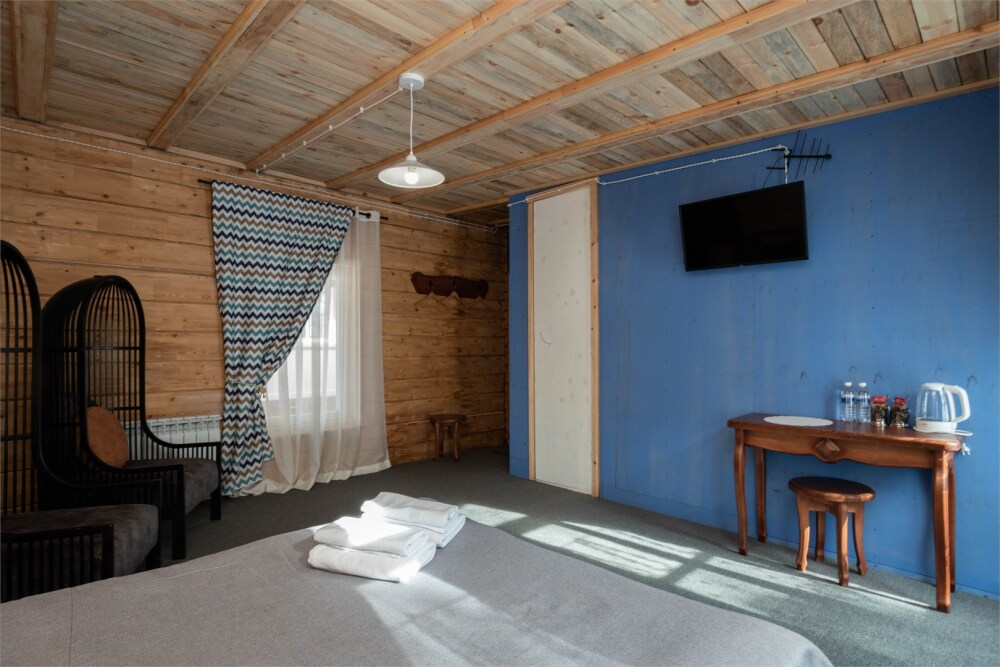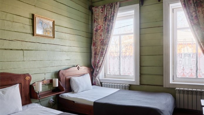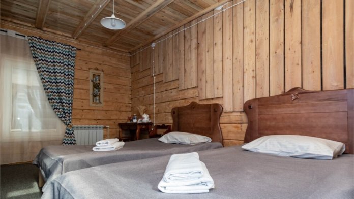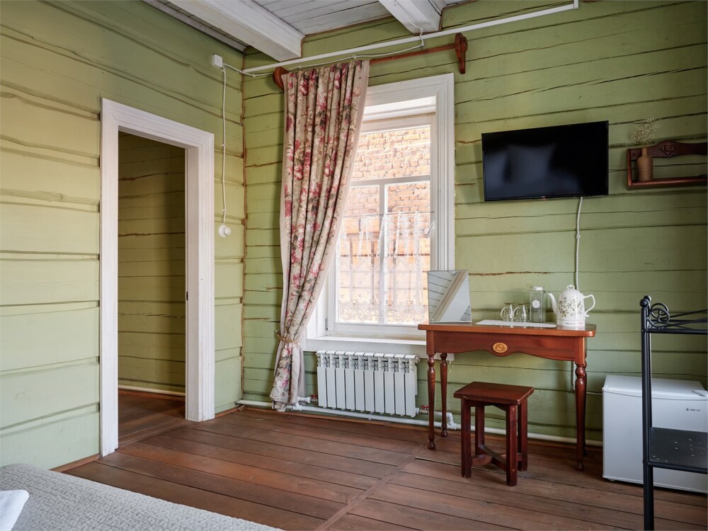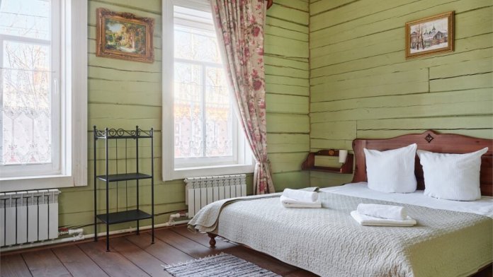 Номерной фонд состоит из 15 номеров. Находится в центре, но в стороне от шумных улиц. В деревянном доме приятно дышать и очень сладко спать. Мебель и все предметы интерьера из дерева. Французское кружево на окнах дарит эстетическое наслаждение взгляду, а плотные блэкаут шторы помогут выспаться в любое время суток. Оригинально оформленные туалетные комнаты, удобный душ, раковина и унитаз в каждом номере. Кровати, сделаны под заказ, конечно, из дерева. Самая маленькая кровать - полуторная, размер 120*200, комфортно даже мамочке с ребенком. В номере люкс кровать размера kingsize - 180*200.
