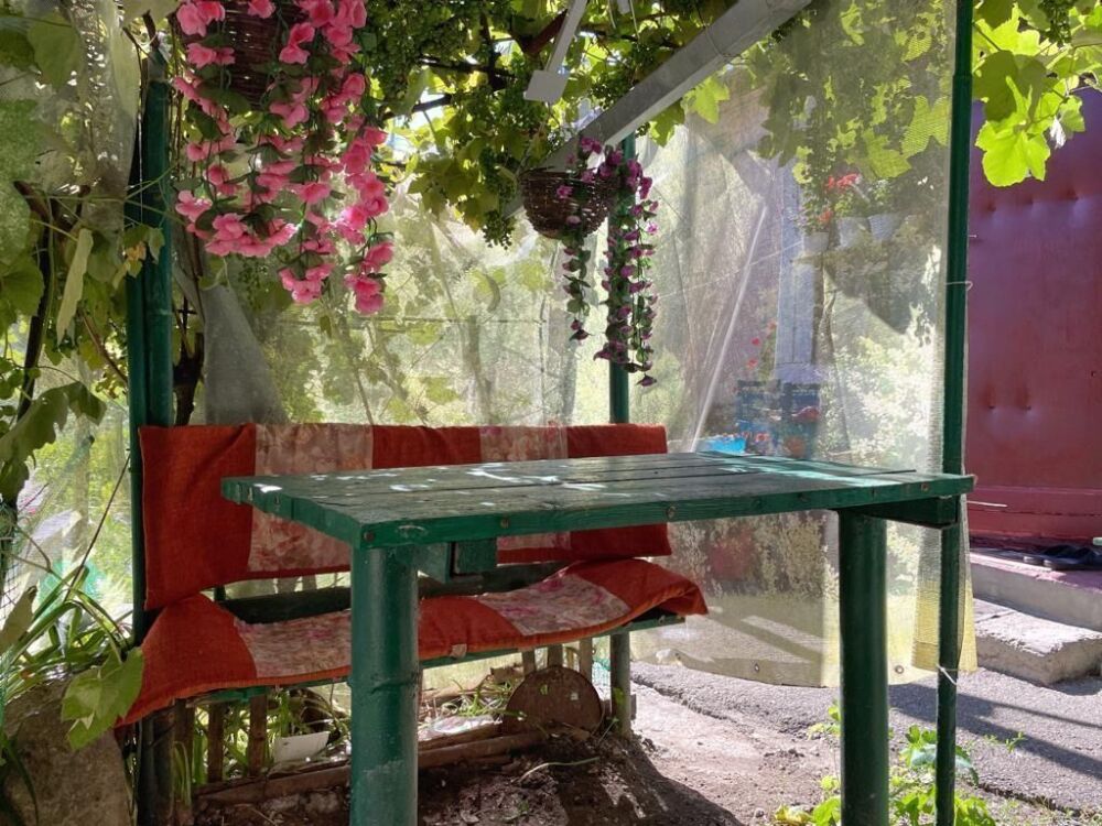 Во дворе Вас ждёт крытая беседка, скамейка и стол. Здесь Вы можете уединиться и отдохнуть от летней жары, попить чай или пообедать на воздухе и даже посидеть в ней, когда на улице дождь. Беседка принадлежит мне и пользоваться ей могут только мои гости.