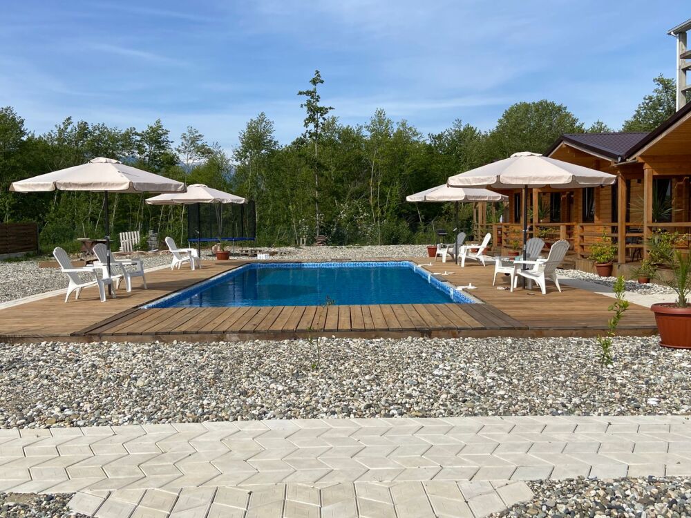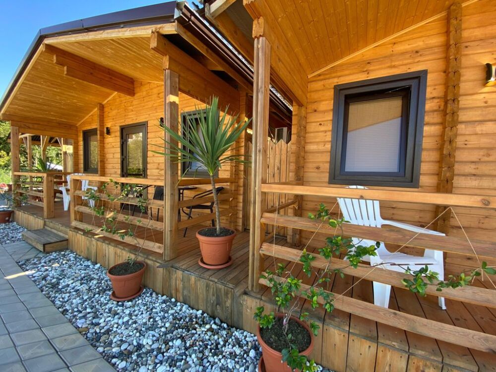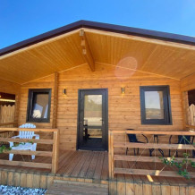 Комфортабельная база отдыха - деревянные домики из бруса на первой береговой линии. Пустынный галечно-песчанный пляж и лазурное море для Вашего отдыха.