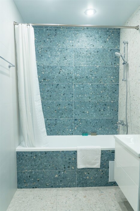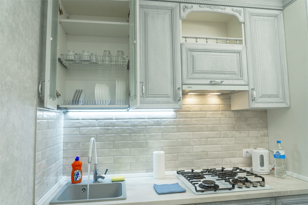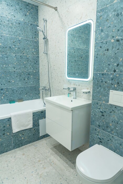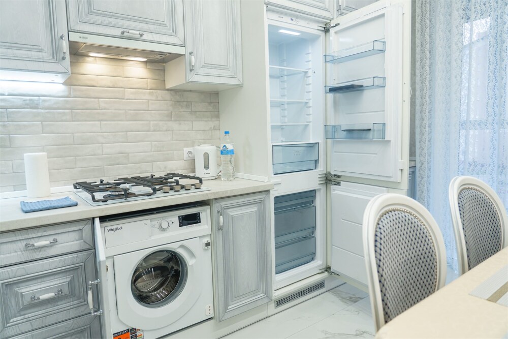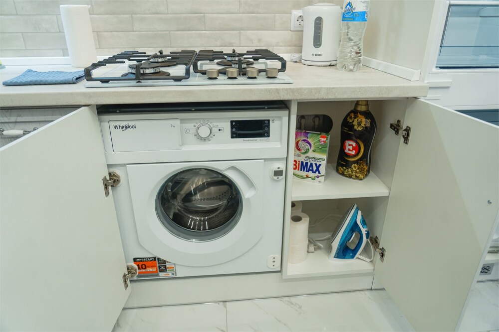 в числе удобств стиральная машина, полностью оборудованная кухня, собственная ванная комната с бесплатными туалетно-косметическими принадлежностями, телевизор с плоским экраном и бесплатный Wi-Fi, а также чайник, утюг, гладильная доска, фен;