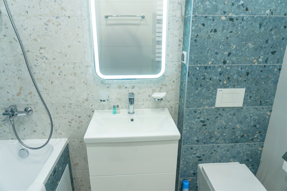 кирпичный дом, в котором расположены апартаменты, построен в 2022г. в тихом и престижном районе города. Рядом супермаркеты, аптека, развлекательный комплекс «Резиденция королей», ресторан «Базилик», семейный ресторан «Папаша Беппе», остановка общественного транспорта.