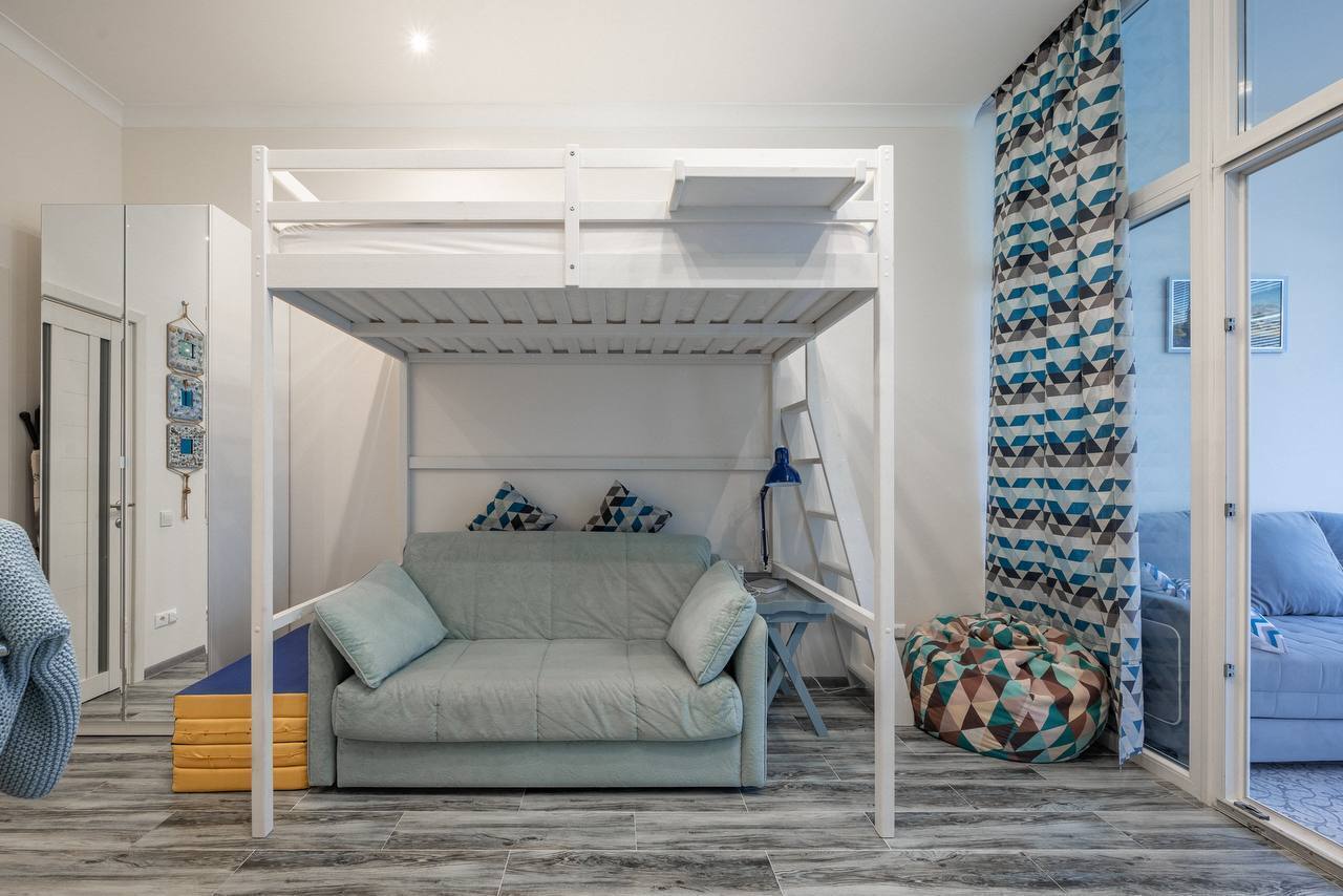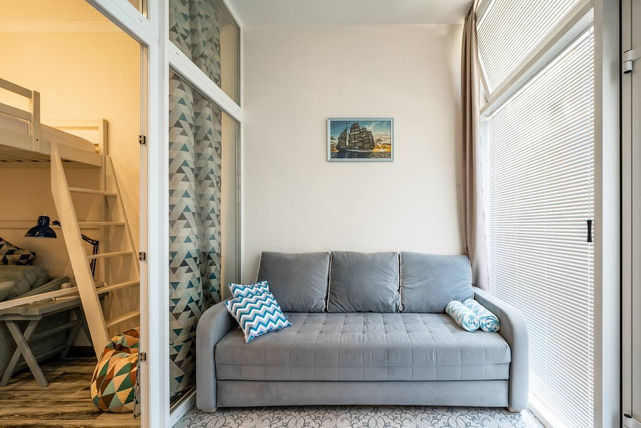 В квартире комфортно могут разместиться до 5 гостей. Удобные раскладные диваны, кровать 120*200 вторым ярусом. Расположена на территории города-отеля «Бархатные сезоны». Закрытая охраняемая территория комплекса и бесплатная парковка для гостей. Множество кафе, столовых, ресторанов, детских площадок вокруг.