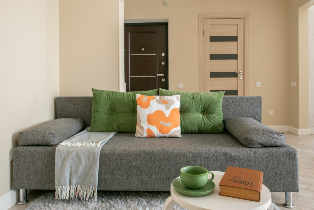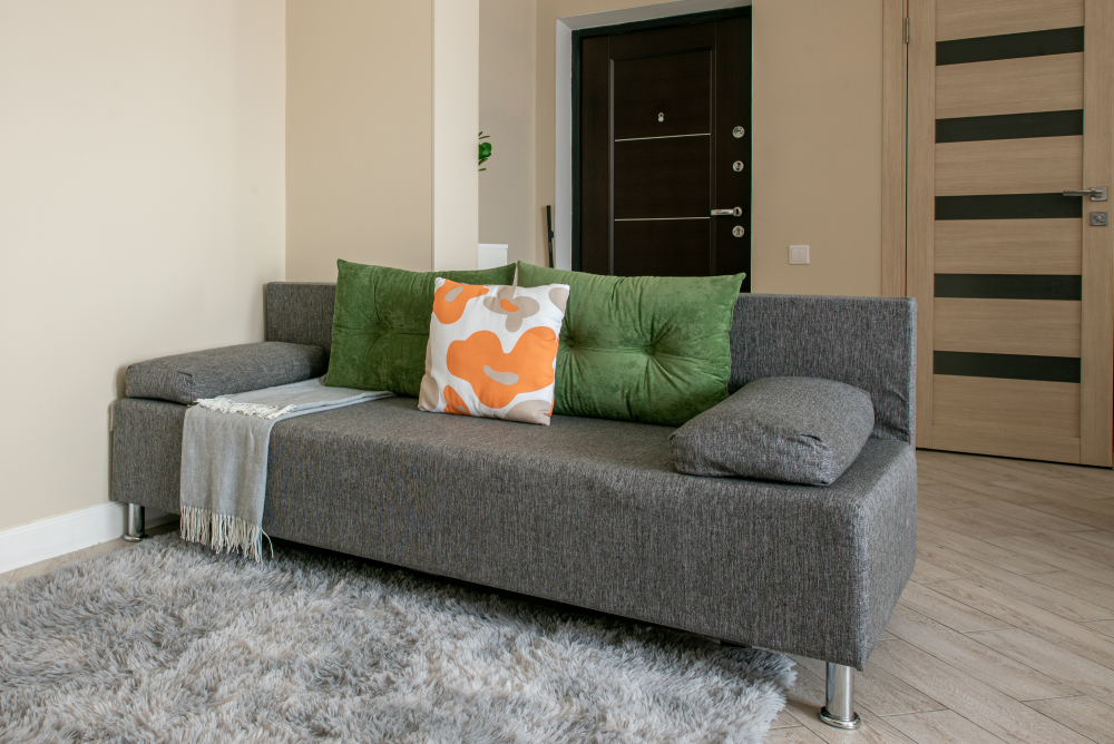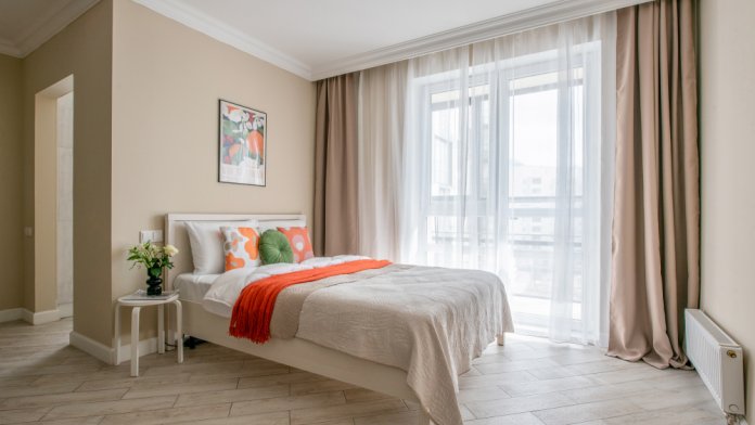 - Удобную двуспальную кровать с ортопедическим матрасом и раскладной диван для двух дополнительных мест.