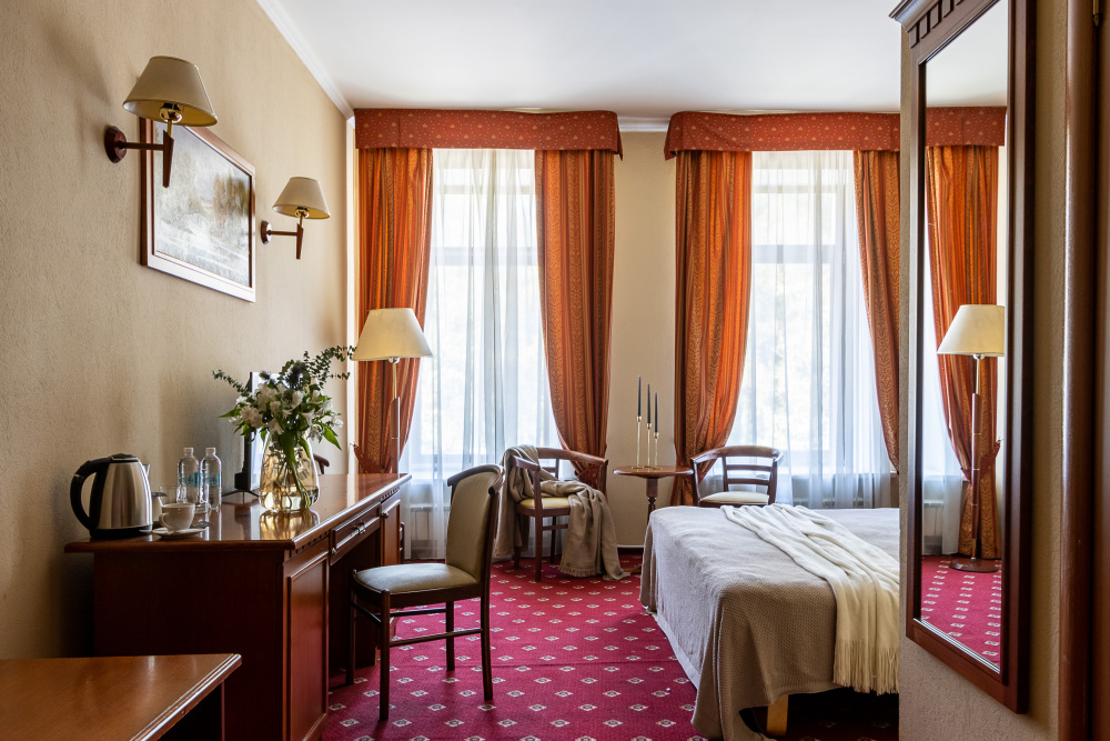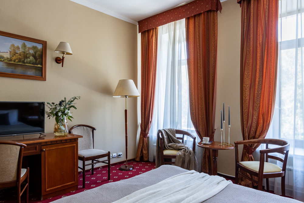 Отель идеально подходит для деловых поездок и отдыха, а также для путешествий по наиболее красивым пригородам Санкт-Петербурга со знаменитыми императорскими дворцами и парками - Гатчины, Пушкина, Ораниенбаума, Павловска и Петергофа.