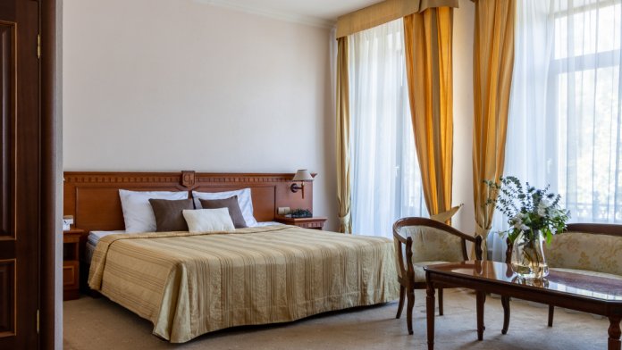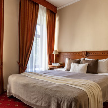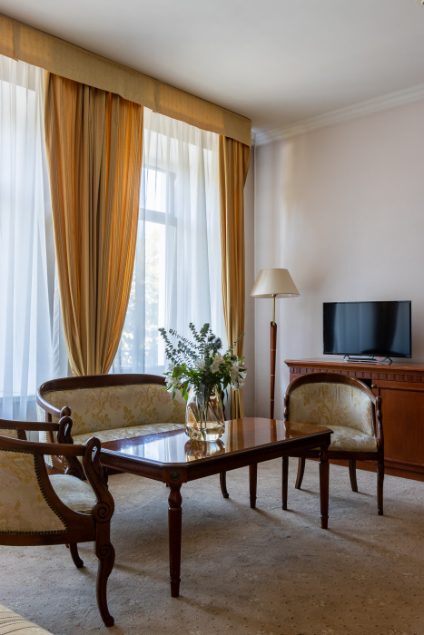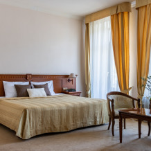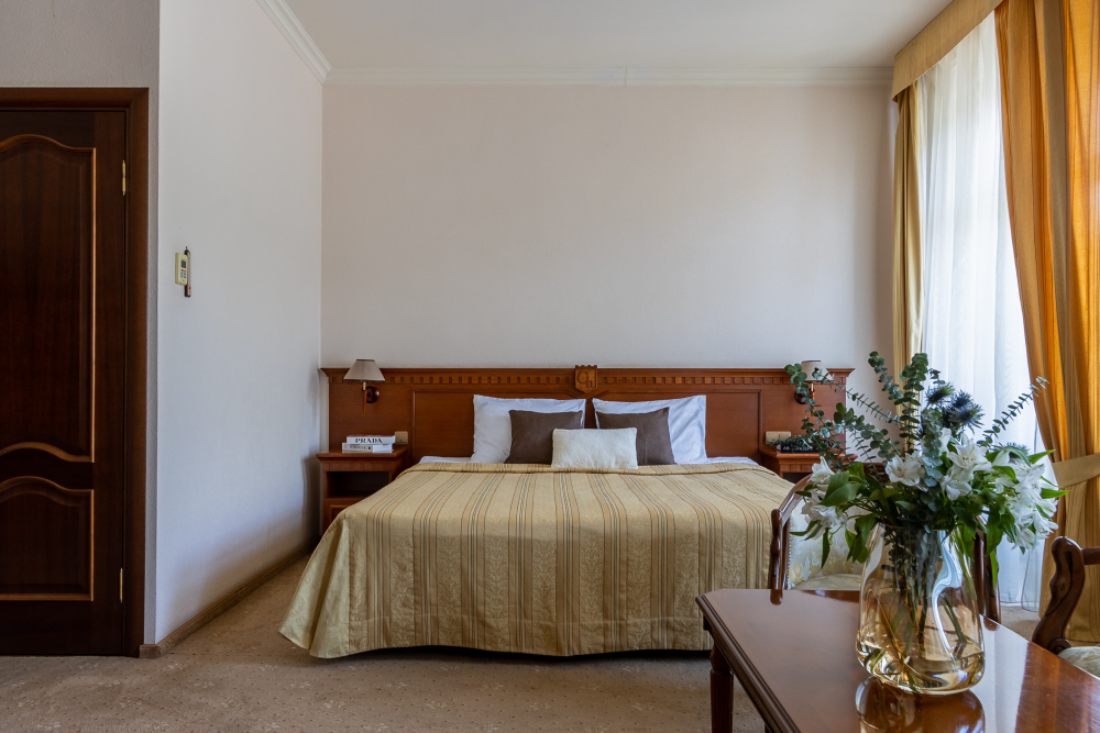 Приглашаем Вас в роскошный Голден Отель! Он расположен в самом центре города Гатчина – одного из главных парадных пригородов Санкт-Петербурга - среди аллей, музеев и дворцов. Здание гостиницы, являющееся памятником архитектуры второй половины XIX века, полностью реконструировано в 2005 году. Архитектура отеля гармонично сочетает традиции классического стиля и современность, а из панорамных окон гостиницы открывается удивительный вид на Императорский Дворцово-Парковый Ансамбль. Широкий выбор категорий номеров в классическом исполнении дополняют исторический образ отеля.