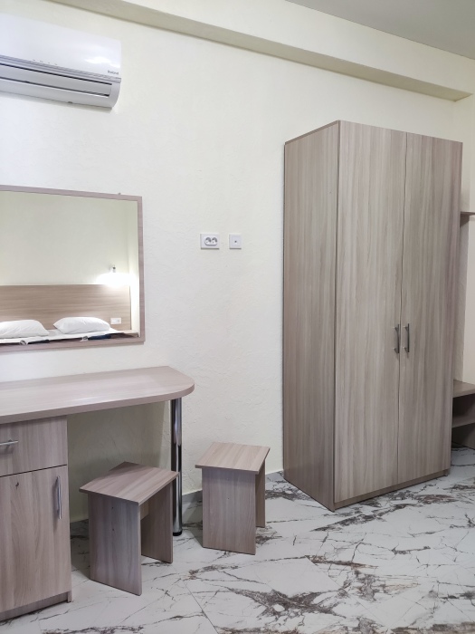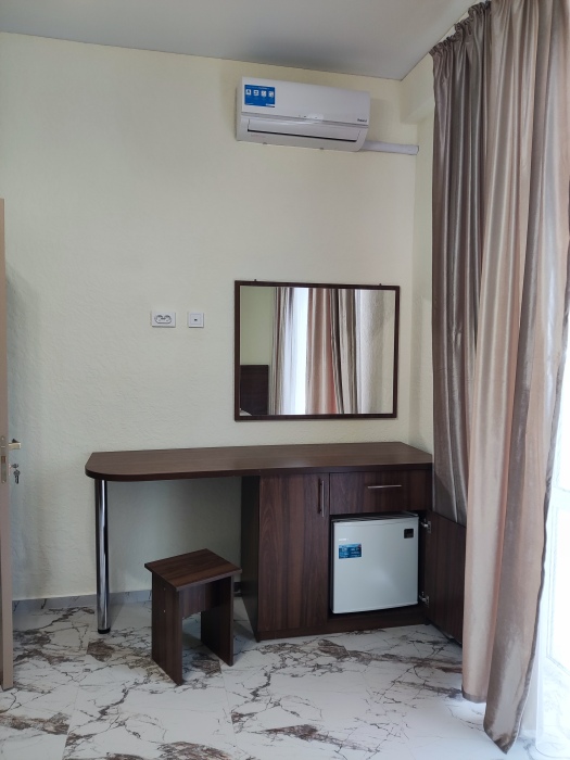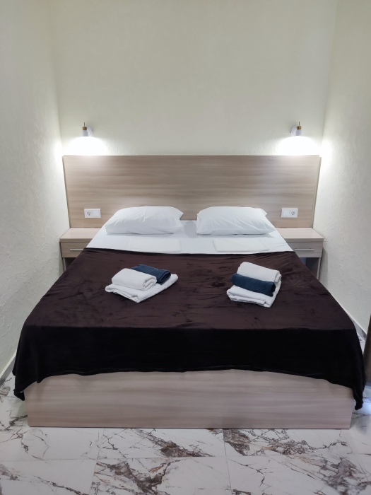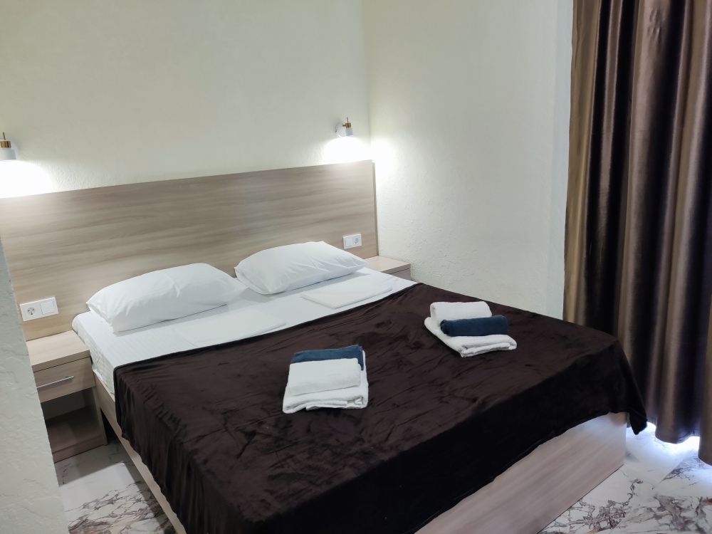 Отель располагает уютными номерами различных категорий: Стандарт, Комфорт и Люкс семейный. Каждый номер оборудован всем необходимым для комфортного проживания, включая современную мебель, кондиционер, телевизор и собственную ванную комнату.