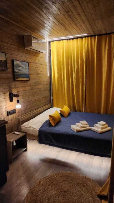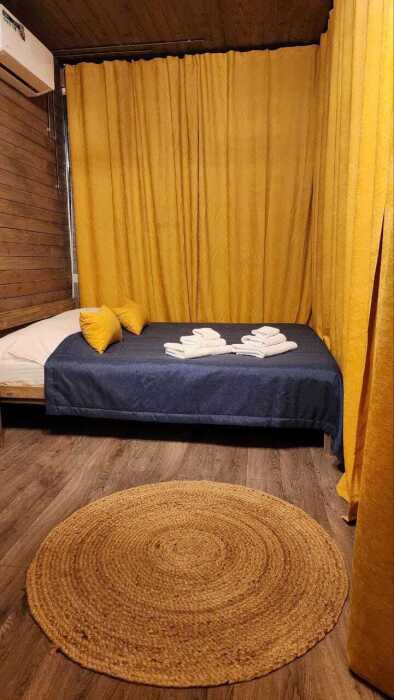 Гости могут разместиться в Апартаментах и домике. В каждом из них есть: кровать, кухня со всей необходимой техникой и посудой. Ванная комната. Разрешено проживание с домашними питомцами. Работает Wi-Fi.
