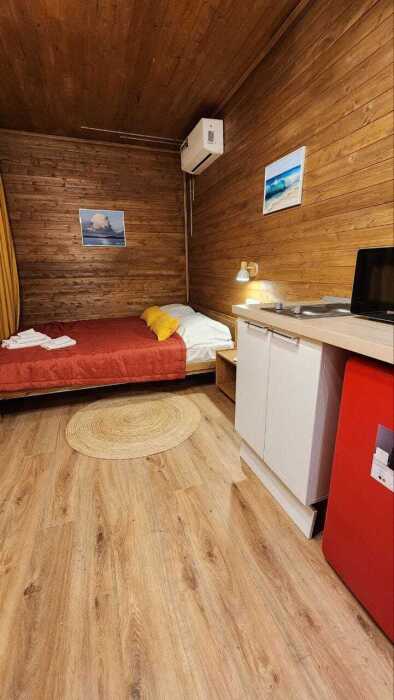Уютный номер с видом на Голубое озеро. Номер находится на втором этаже с панорамными окнами. В номере: двуспальная кровать (Queen size), Wi-Fi, электрическая плита, холодильник, микроволновка. Собственный санузел, отопление. Возможность дополнительного места (раскладушка).