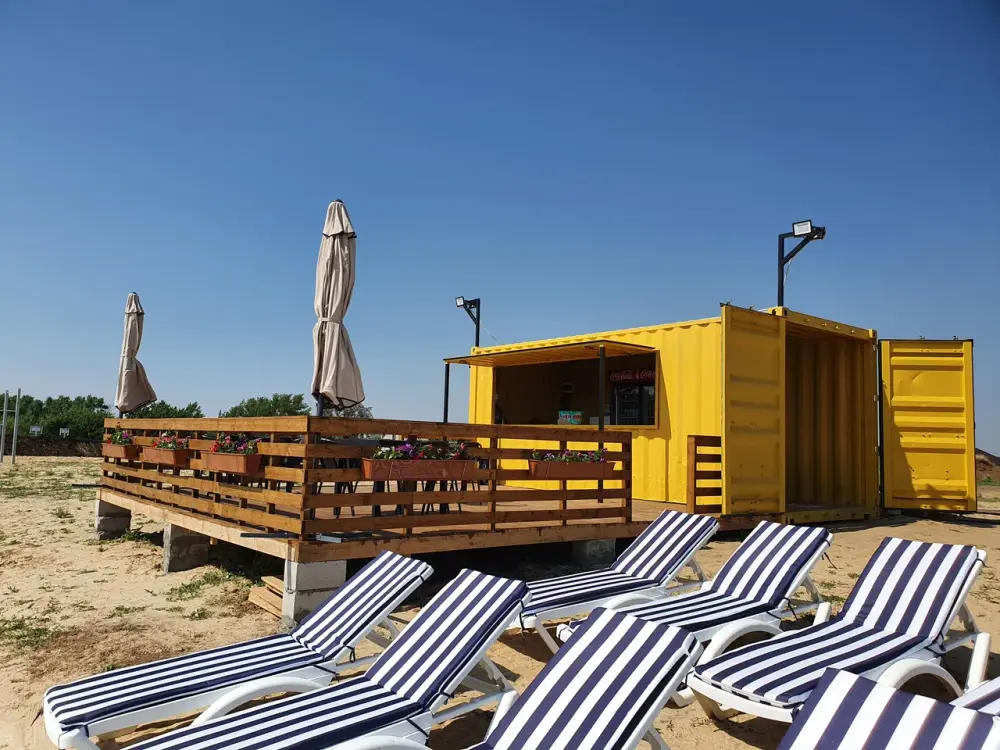 На территории есть беседки, кострище, мангал для барбекю. Для автомобиля предусмотрена парковка. Создание романтической атмосферы (свечи, цветы, конфеты) — по предварительному согласованию. На пляже кемпинга есть спортивная площадка, кафе-магазин, лежаки и другой пляжный инвентарь. Здесь же можно арендовать сап или каяк, чтобы поплавать в водах живописного озера. Ну, а на берегу можно устроить прекрасный пикник.