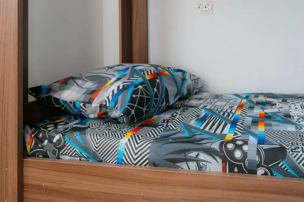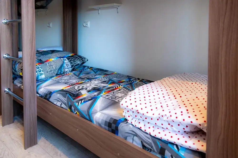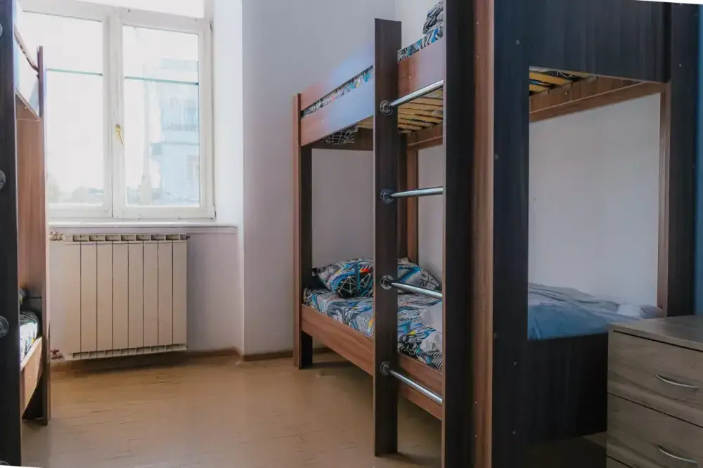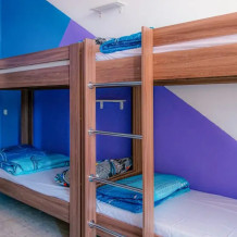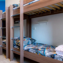 В хостеле 6 номеров различной категории и ценовой политики. Номера оформлены в светлых тонах и имеют самую необходимую технику и мебель для комфортного проживания. Все места оборудованы полочкой под Ваши вещи и розетками для зарядки гаджетов Гости всех номеров пользуются общей ванной комнатой.