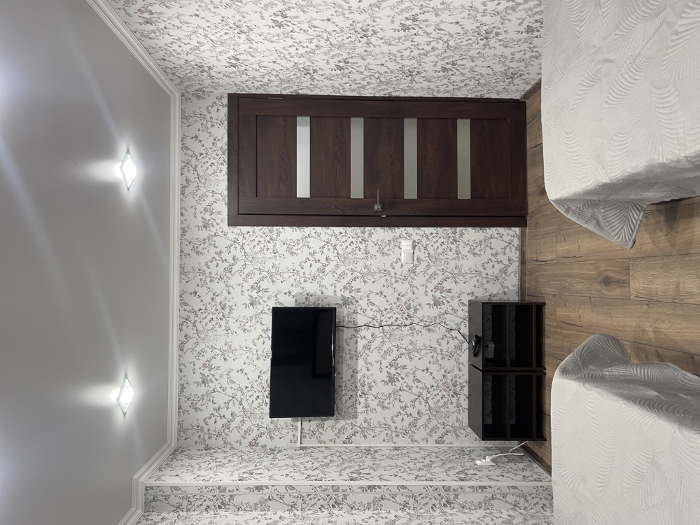 Квартира тёплая, с хорошим ремонтом. Есть все необходимое для проживания: кровать, диван, телевизор, кухонный гарнитур со всей необходимой техникой и посудой. Предоставляются туалетно-косметические принадлежности. Работает Wi-Fi.