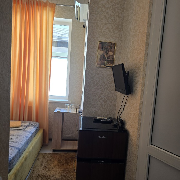 3-местный номер: 2-спальная кровать, односпальная кровать или кресло кровать, тумбочки, шкаф, санузел, тв, сплит, холодильник.