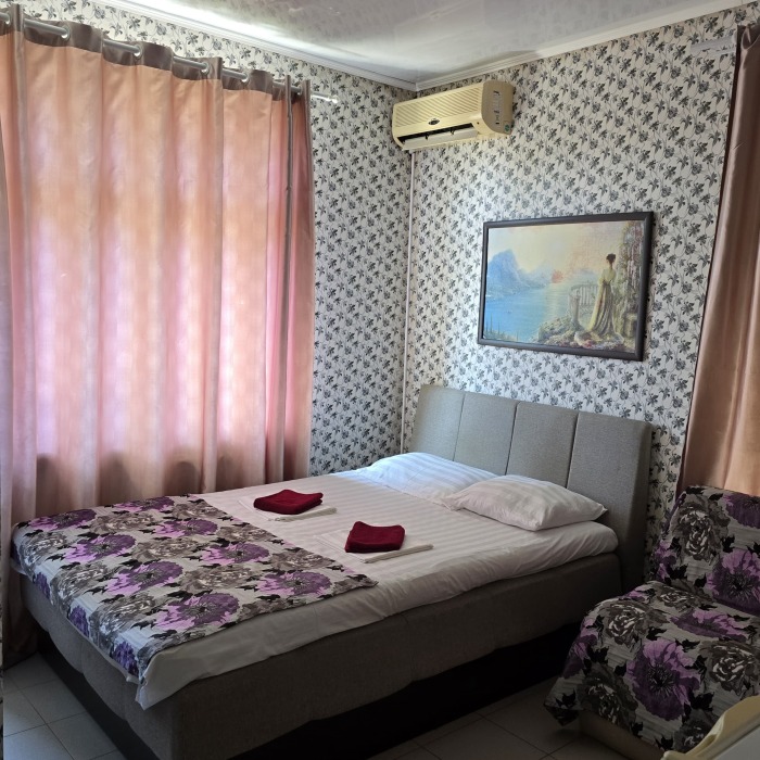 Просторные номера с 2-спальной кроватью, 2-спальным диваном. В номере тв, сплит, холодильник.