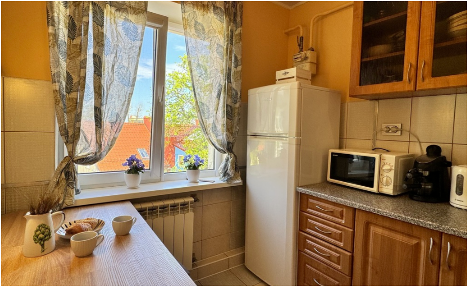 В самом сердце Зеленоградска, чудесные 2-комнатные апартаменты «Cranz Room» по цене студии. Вид на исторический центр, главная улица города котиков!