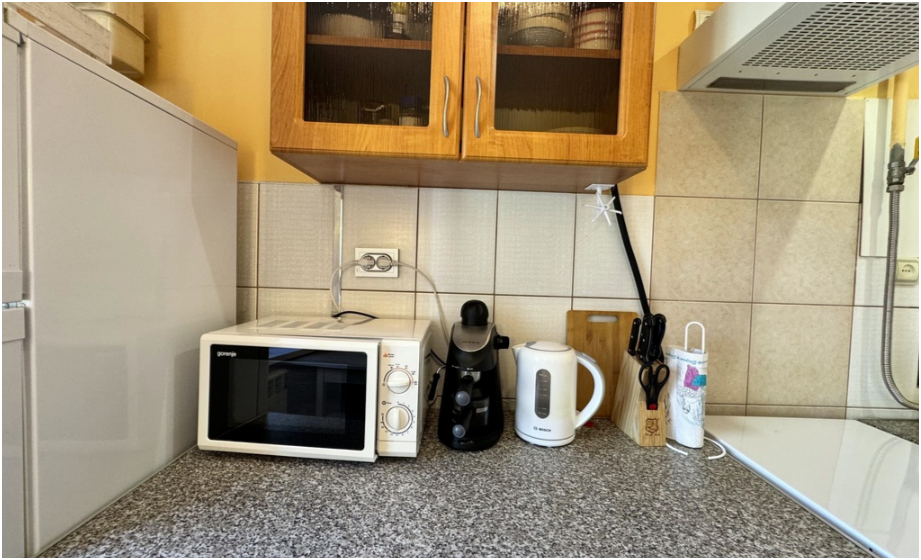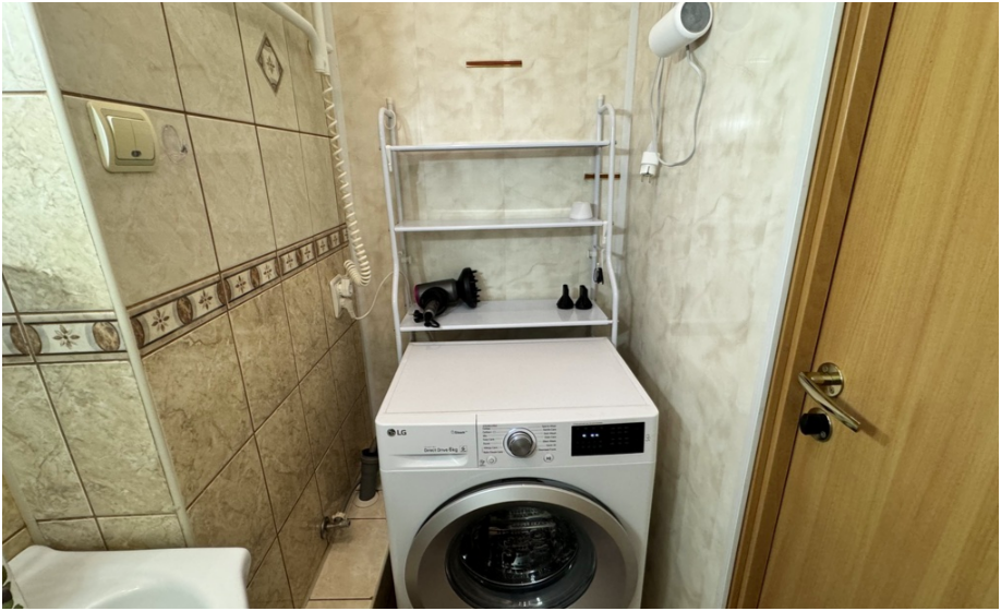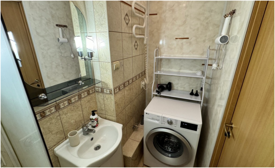 - Душевая и санузел раздельно, полотенца, гель для душа, шампунь, фен, стиральная машина, порошок.