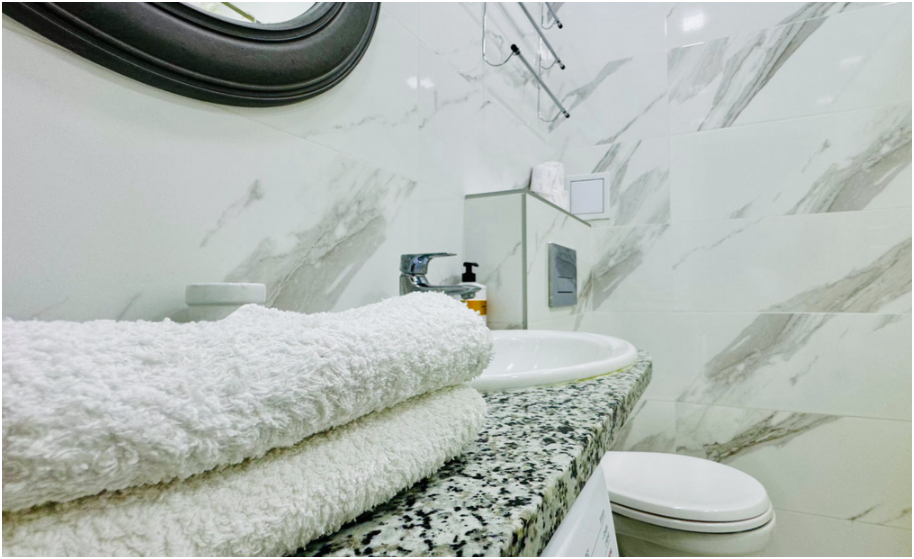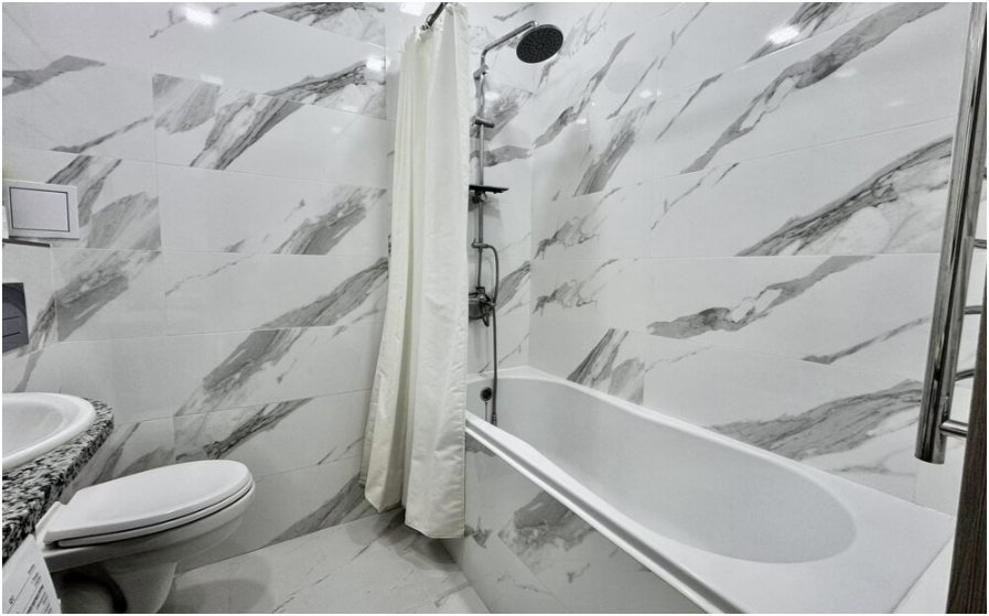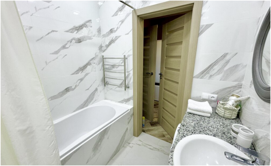 - Ванна с тропическим душем, полотенца, гель для душа, шампунь, фен, стиральная машина, порошок.