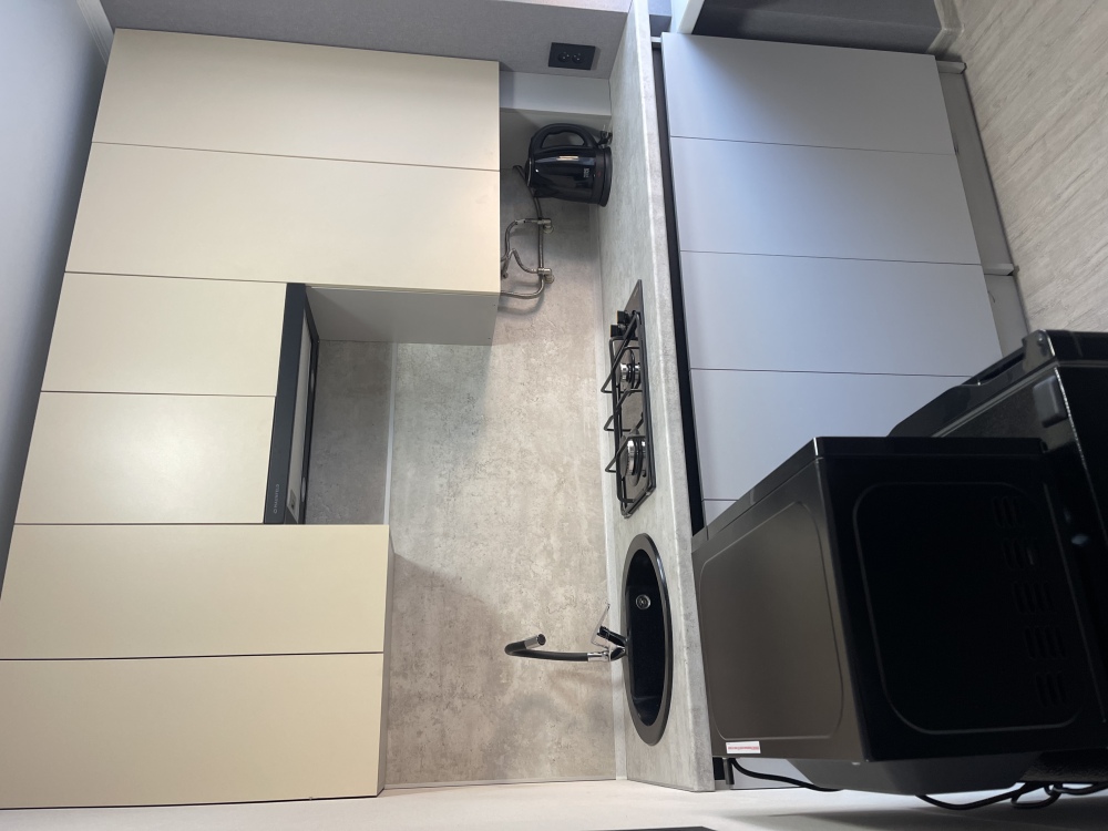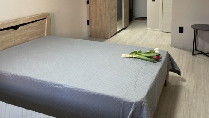 В квартире есть все необходимое для проживания: три односпальные кровати, двухспальная кровать, телевизор, шкаф для одежды, кухонный гарнитур со всей необходимой техникой и посудой. Предоставляются туалетно-косметические принадлежности. Работает Wi-Fi.