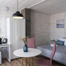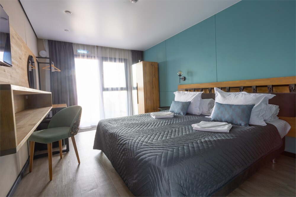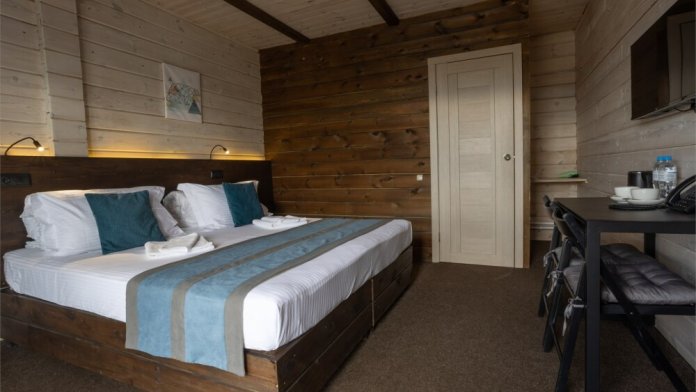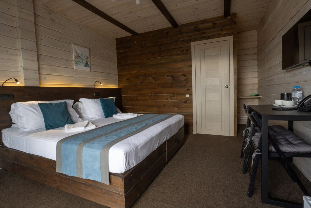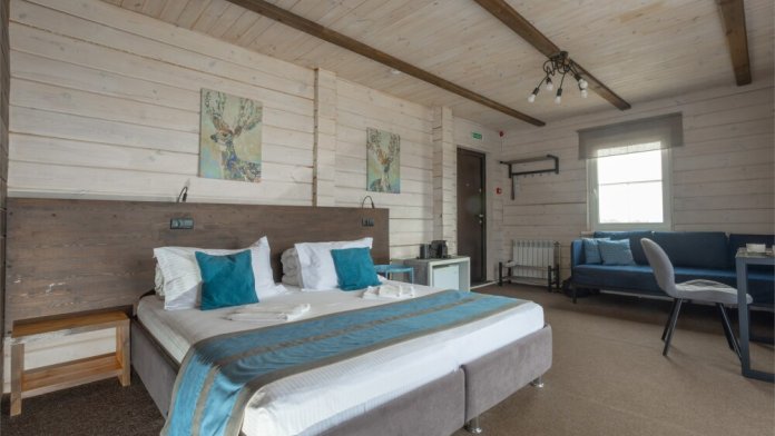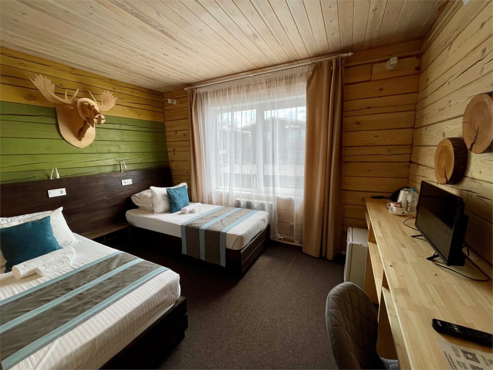 Комплектация номера: теплые полы, 2 односпальные кровати или кровать King-Size, элегантная мебель из натурального дерева, звукоизоляция.