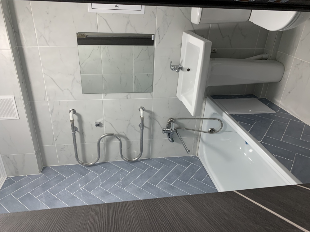 В квартире есть все необходимое для проживания: две односпальные кровати, диван, телевизор, кондиционер, шкаф для одежды, кухонный гарнитур со всей необходимой техникой и посудой. Предоставляются туалетно-косметические принадлежности. Работает Wi-Fi.