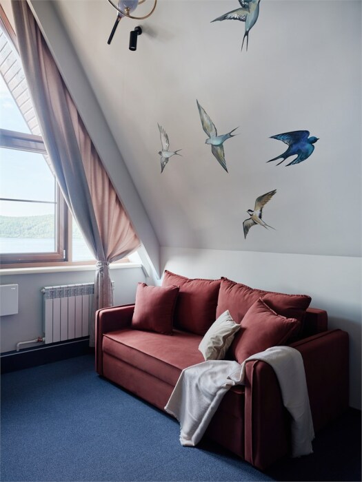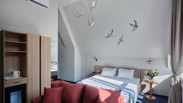 К услугам гостей 27 номеров различной категории (от стандарта до премиальных) с удивительным видом на озеро Байкал и исток Ангары. Одновременно в отеле могут разместиться до 54 человек В каждом номере Вы найдете все необходимое для приятного отдыха: удобные кровати с ортопедическими матрасами, стильную мебель, современные телевизоры и бесплатный Wi-Fi. Для Вашего удобства предусмотрены холодильники, сейфы и кофемашины (в люксе и премиальных номерах).