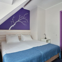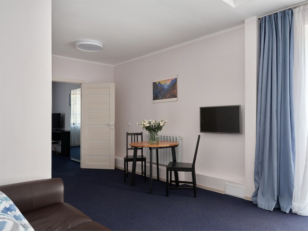 Светлый, яркий, просторный двухкомнатный номер, выполненный в современном стиле с элементами Сибирского Духа. В номере есть балкон с видом на исток Ангары.