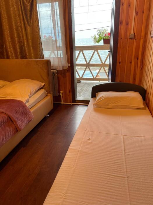Трёхместный номер с двуспальной и односпальной кроватями. Вид на озеро.