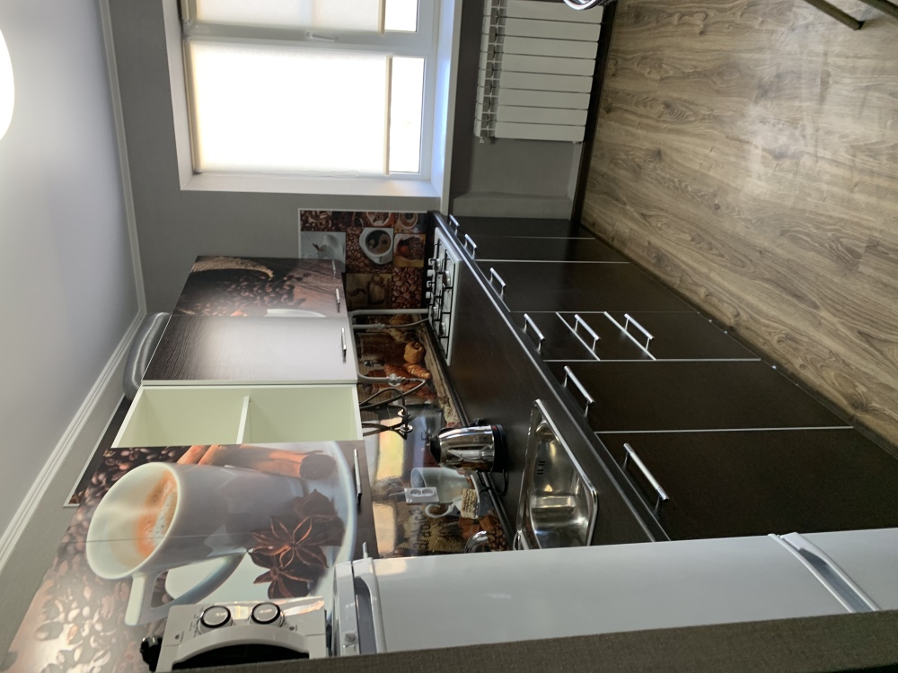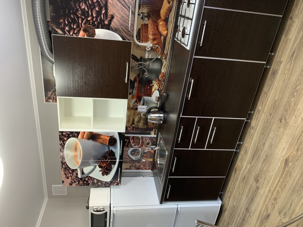В квартире есть все необходимое для проживания: четыре односпальные кровати, диван, телевизор, кухонный гарнитур со всей необходимой техникой и посудой, стиральная машина. Предоставляются туалетно-косметические принадлежности. Работает Wi-Fi.