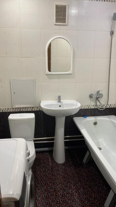 В квартире есть все необходимое для проживания: двухспальная кровать, диван, телевизор, кухонный гарнитур со всей необходимой техникой и посудой, стиральная машина. Предоставляются туалетно-косметические принадлежности. Работает Wi-Fi.