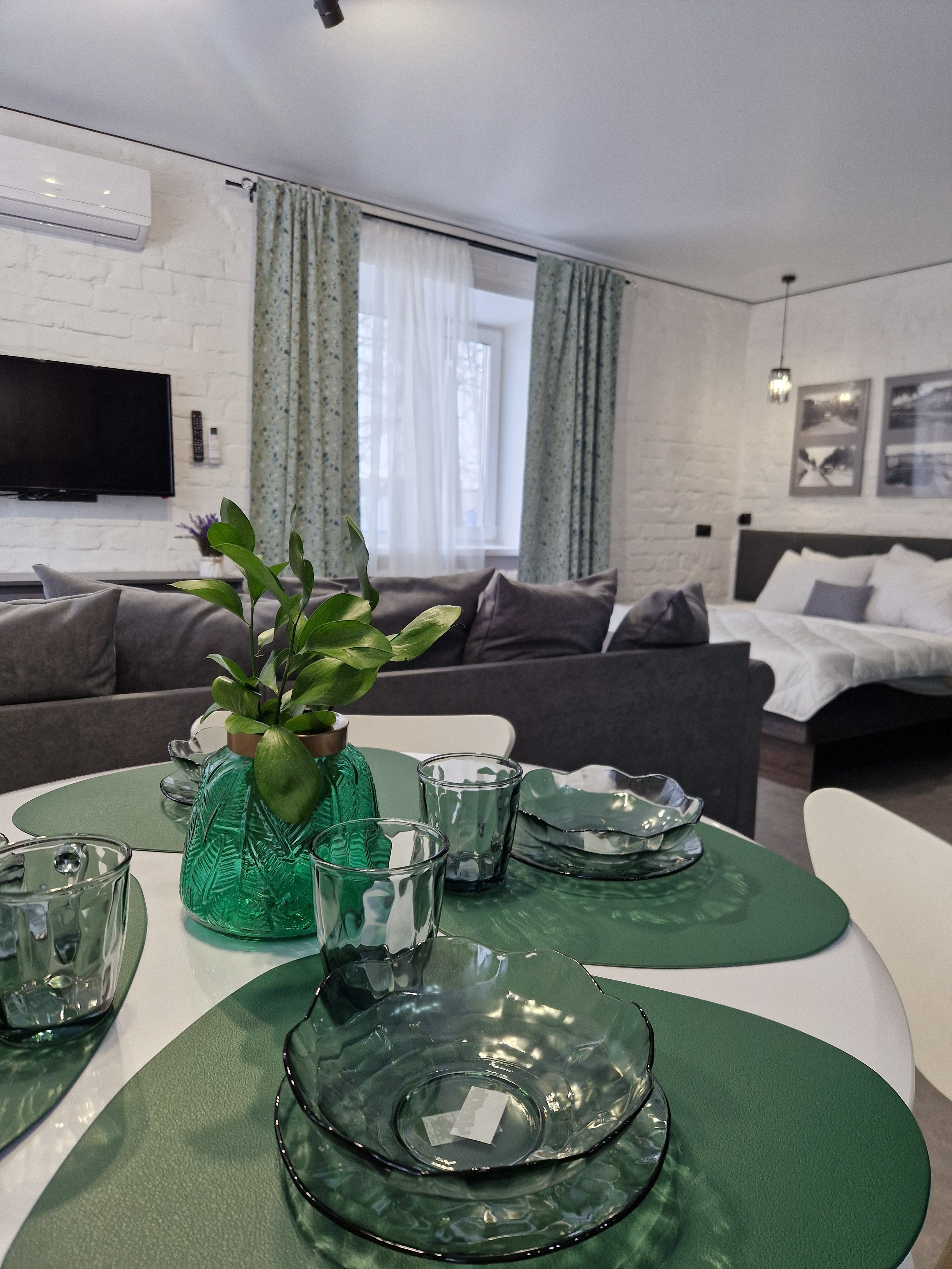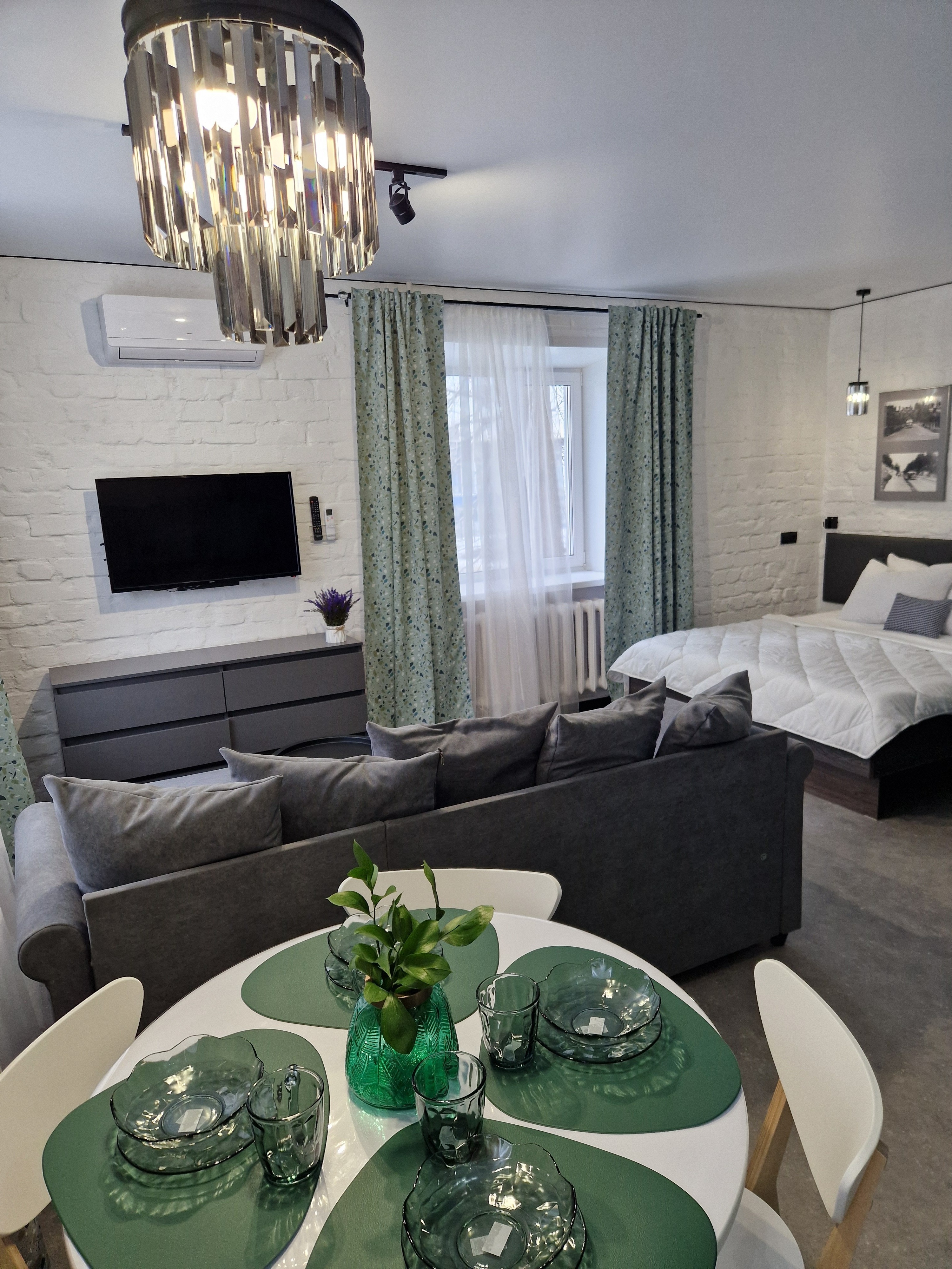 Атмосферные дизайнерские 1-комнатные апартаменты в самом центре города.