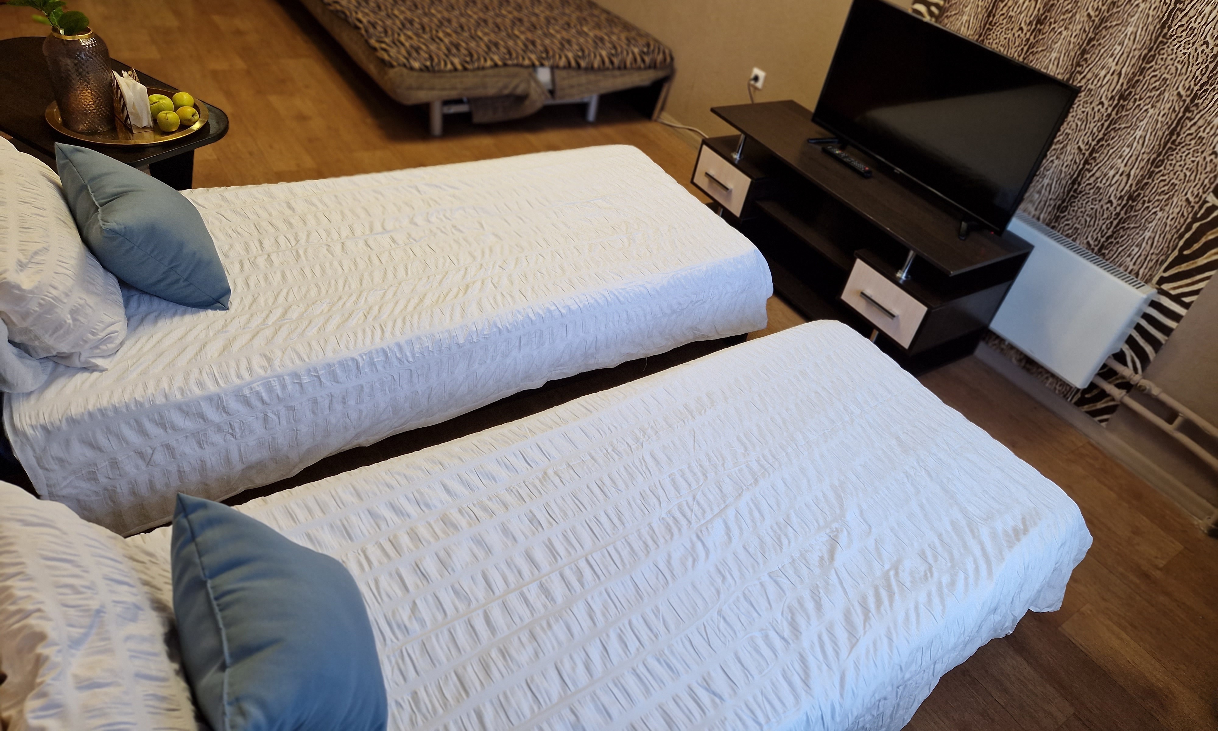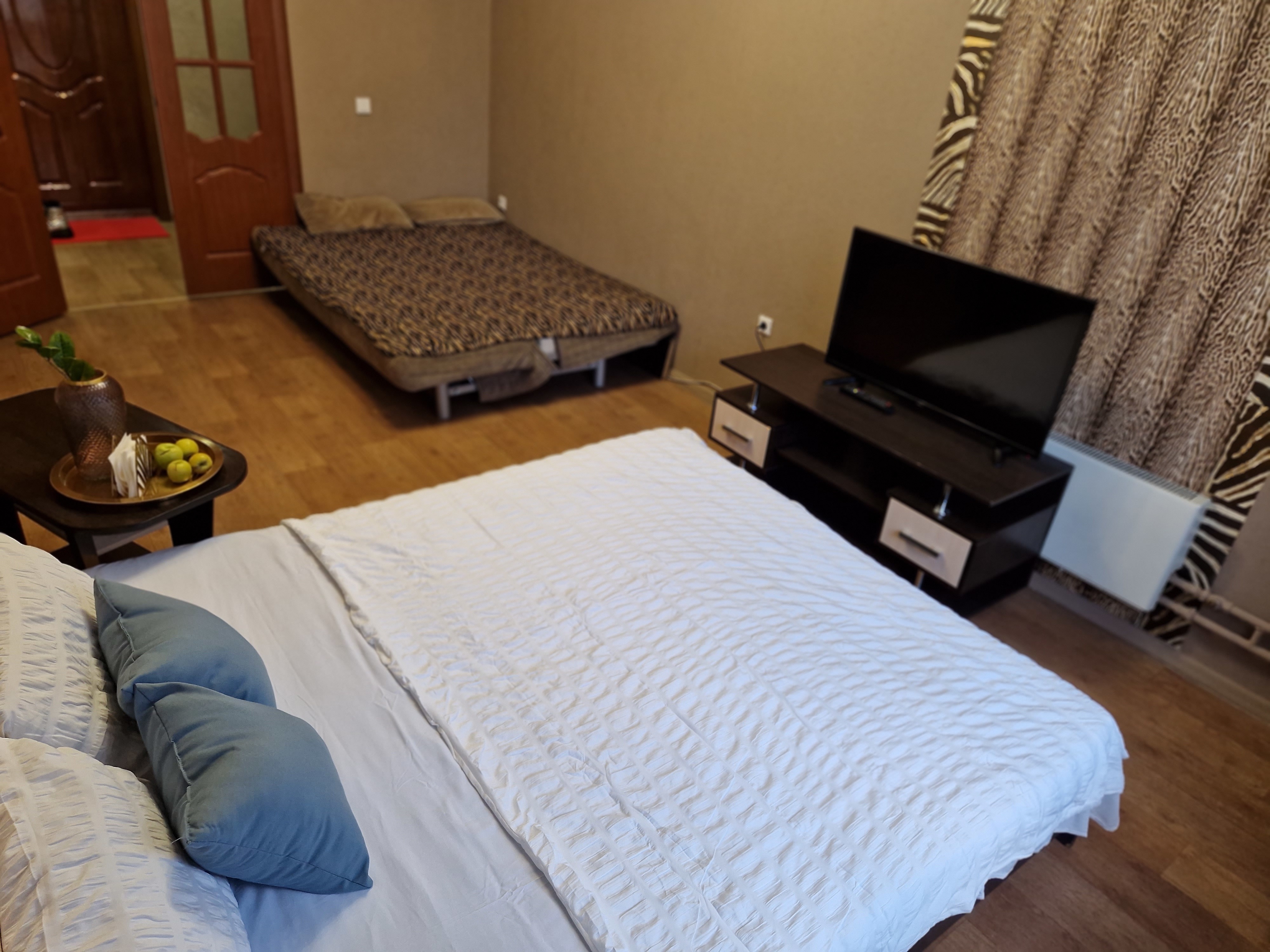 В квартире имеется: Wi-Fi, белье, полотенца, посуда, уборка, вся необходимая техника и мебель. Раздельные спальные места по системе сдвижных - раздвижных кроватей.
