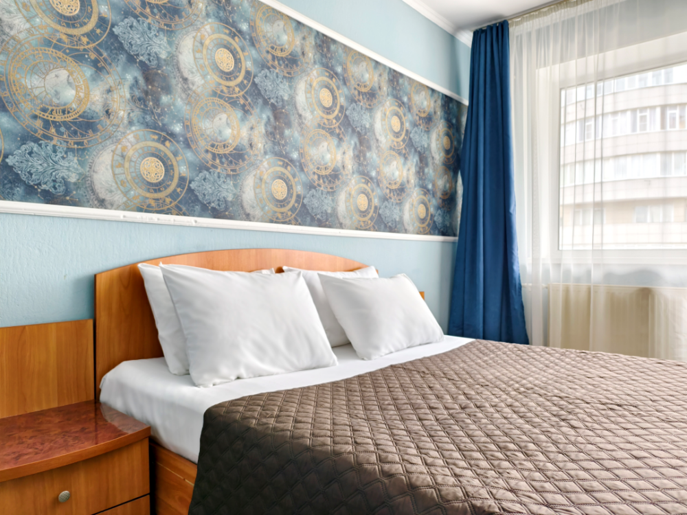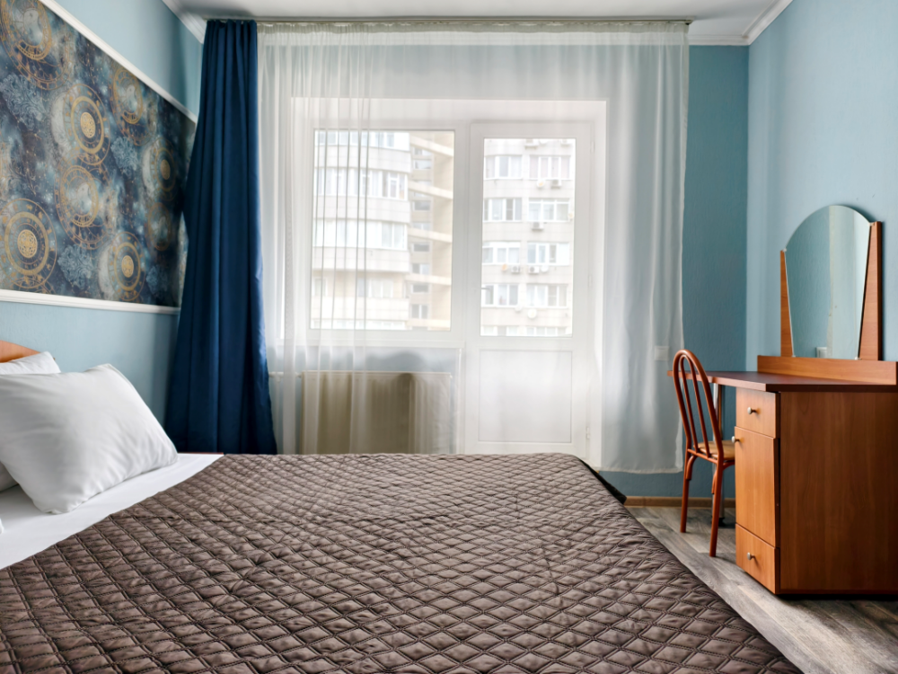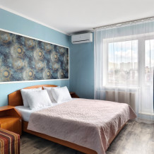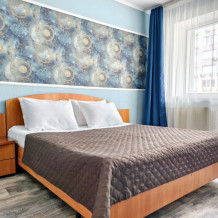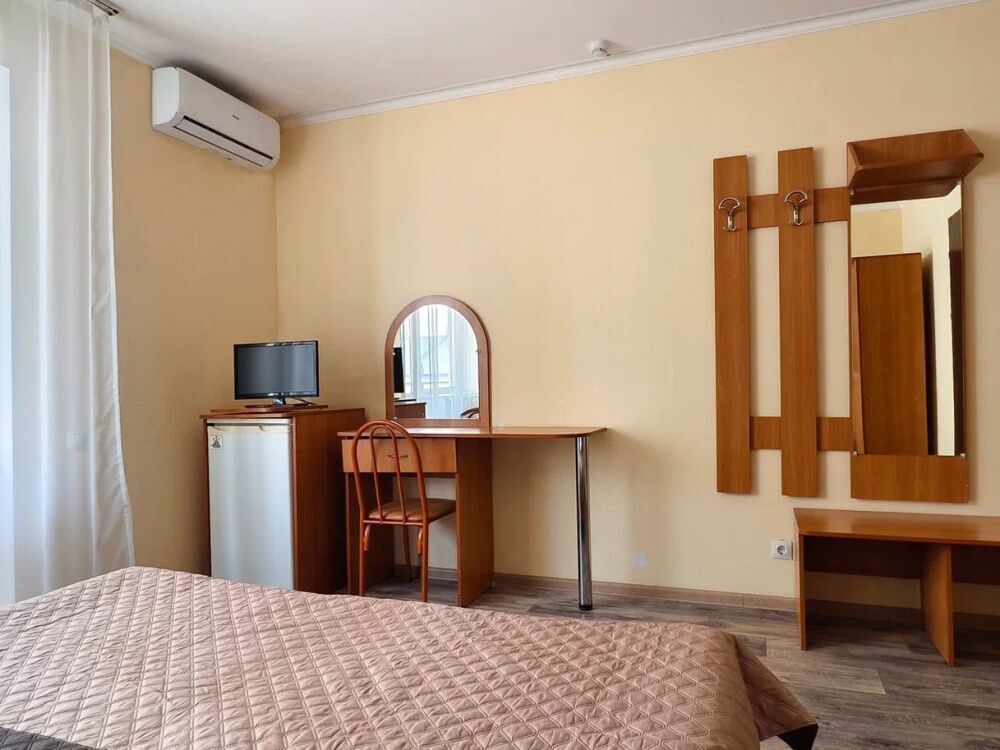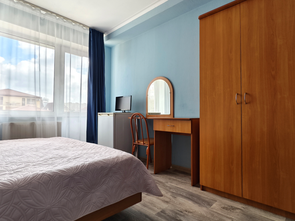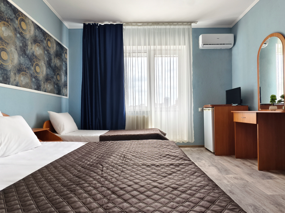 В номере двуспальная кровать или две односпальные кровати, прикроватные тумбочки, шкаф, туалетный столик, зеркало, вешалка для одежды, стул, телевизор, кондиционер, мини-холодильник. Ванная комната: ванна, раковина, туалет, зеркало, полотенцесушитель.