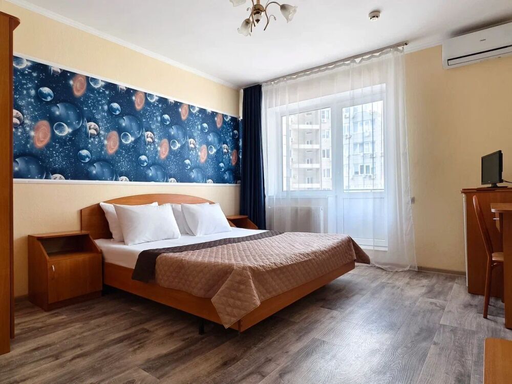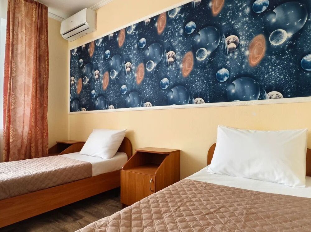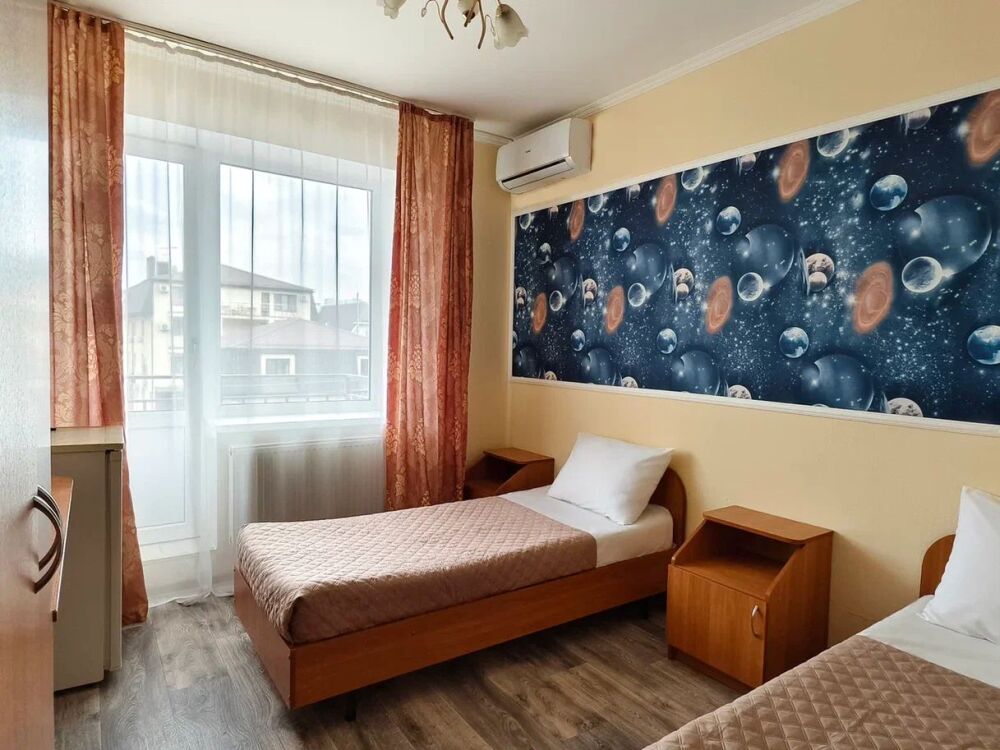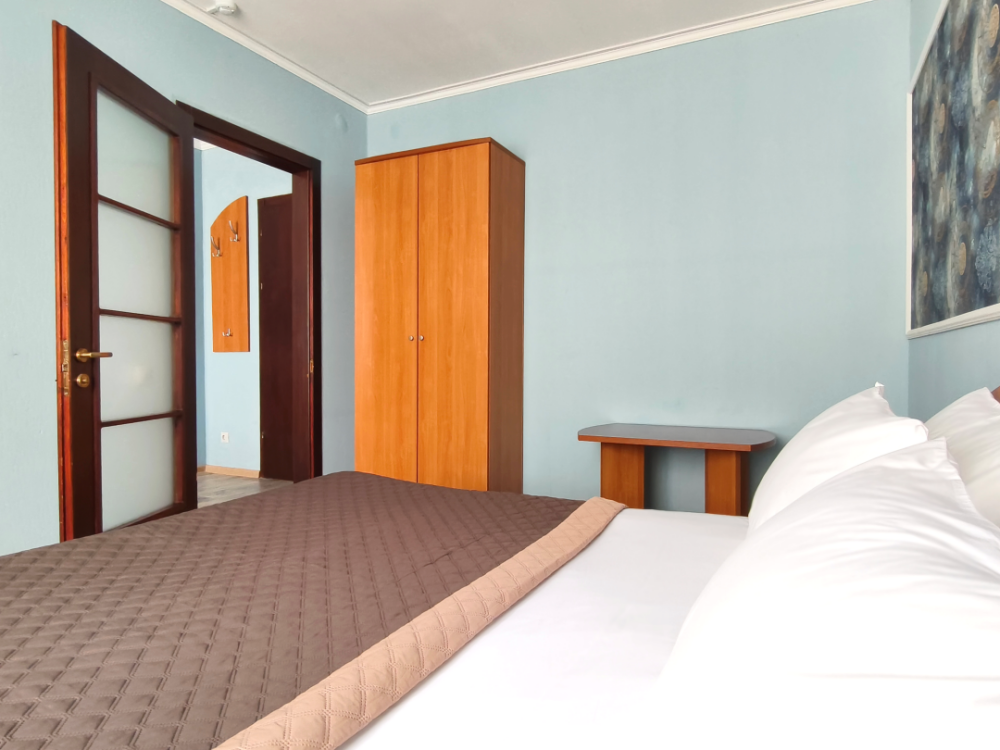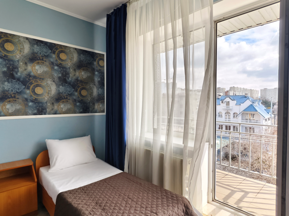 Вас ждут уютные и светлые номера, оснащенные всем необходимым для комфортного проживания: кондиционером, бесплатным Wi-Fi, телевизором, мини-холодильником, шкафом и собственной ванной комнатой. Также каждый номер с выходом на балкон.