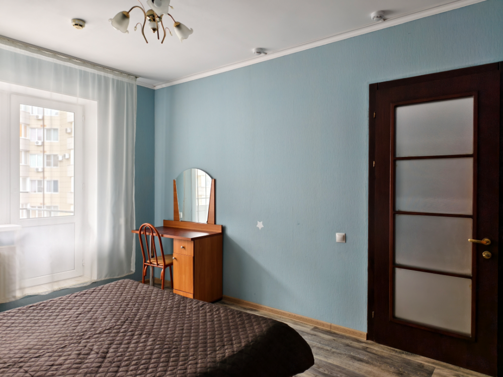 В номере двуспальная кровать, односпальная кровать или кресло-кровать, прикроватные тумбочки, шкаф, журнальный столик, туалетный столик, зеркало, вешалка для одежды, стул, телевизор, кондиционер, мини-холодильник. Ванная комната: ванна, раковина, унитаз, зеркало, полотенцесушитель. Номер с балконом.