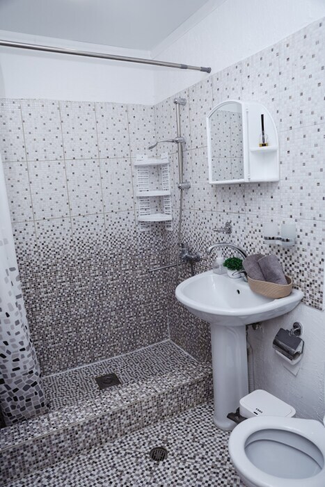 В 4 минутах ходьбы располагается общественный полностью оборудованный пляж (мелко-галечный).