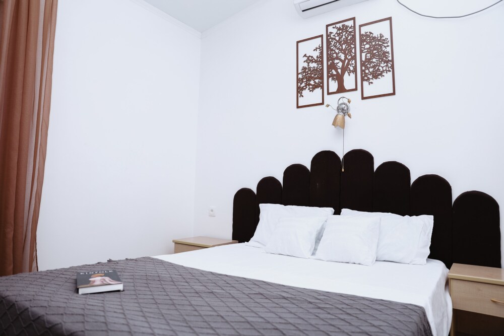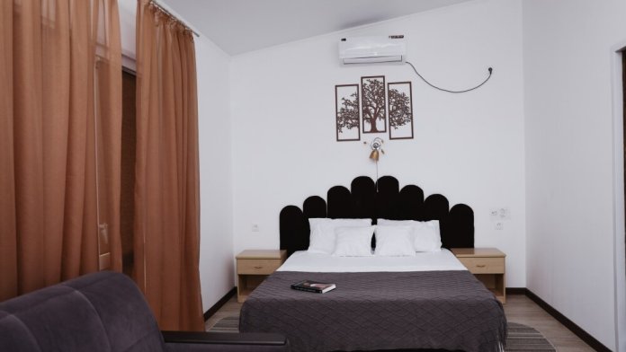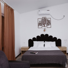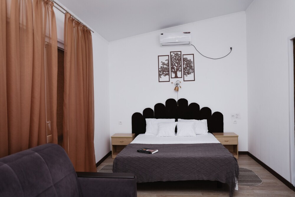 Номера оснащены мебелью в классическом стиле, телевизор, холодильник, кондиционер, ванная комната с душевой кабиной, банные полотенца, фен.