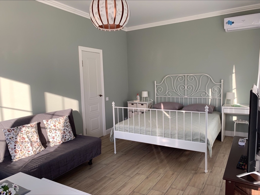 На территории расположено 4 дизайнерских апартамента, каждый в своем индивидуальном стиле. Апартаменты оснащены подачей горячей/холодной воды, электрическим чайником, микроволновкой, электроплитой (по запросу), холодильником, телевизором, кухонными принадлежностями, постельным бельем и полотенцами (бесплатно меняем каждые 5 дней). Вход в апартаменты индивидуальный, с выходом в патио или на террасу.