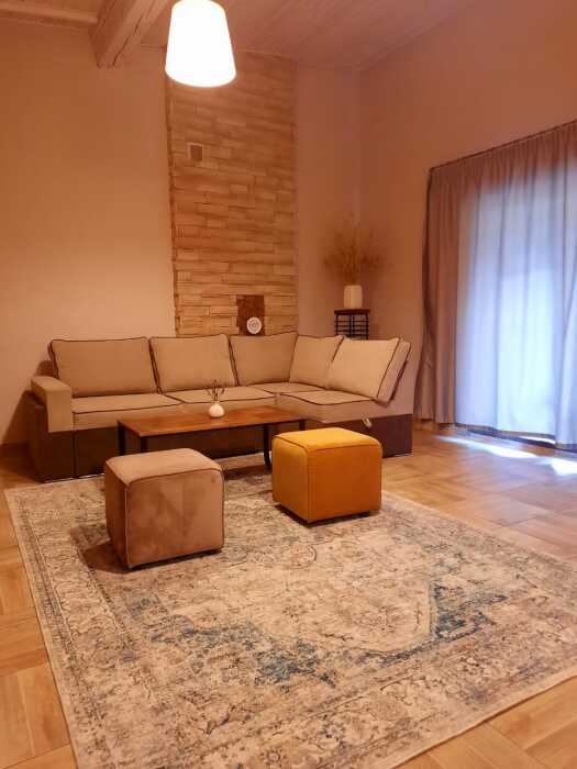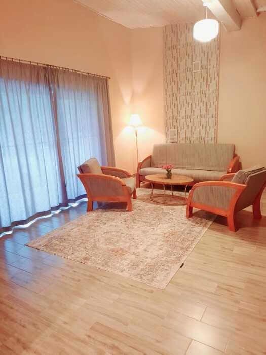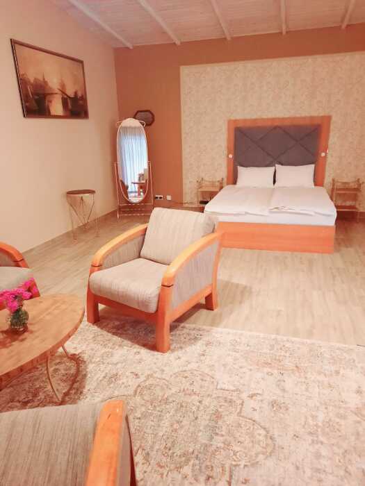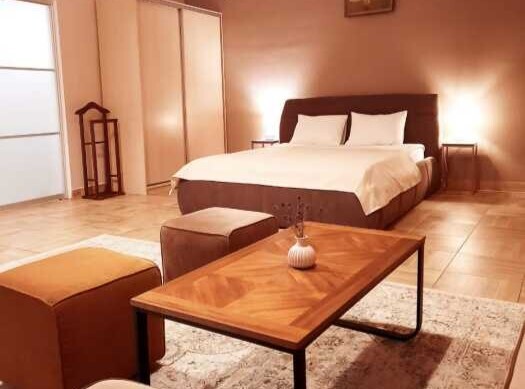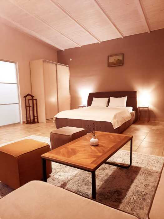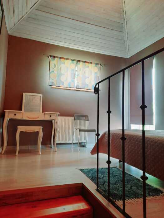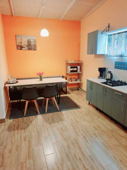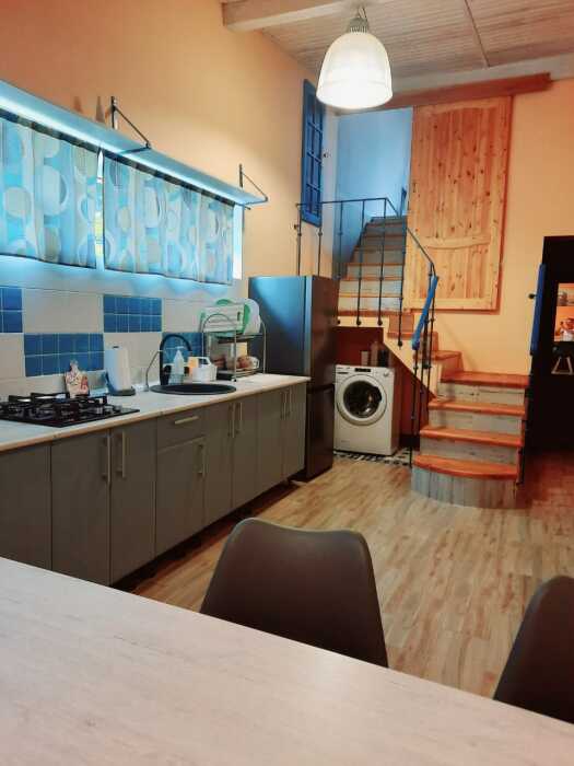 В гостевом доме две двухэтажные Апарт-студии с отдельными входами. Изолированная спальня в каждой студии на втором этаже и просторными кухонными и гостевом зонами на первом этаже.Каждая студия оснащена: мебелью, телевизором, кухонным гарнитуром со всей необходимой техникой и посудой, ванной комнатой, стиральной машиной.