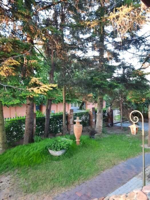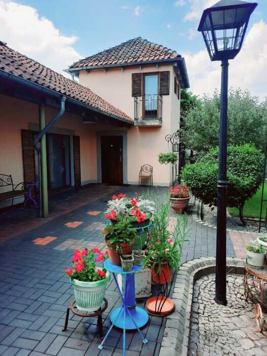 Территория гостевого дома огорожена с ландшафтным дизайном, которая представляет собой дворик с аутентичными отреставрированными постройками 30-х годов прошлого века. Кованая калитка, через которую мы попадаем на территорию гостевого дома, выполнена тем же кузнецом, кто ковал решётки для главной достопримечательности нашего города, Кафедрального собора. Для гостей предусмотрена парковка автомобилей. На территории есть мангальная зона и беседка.