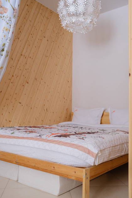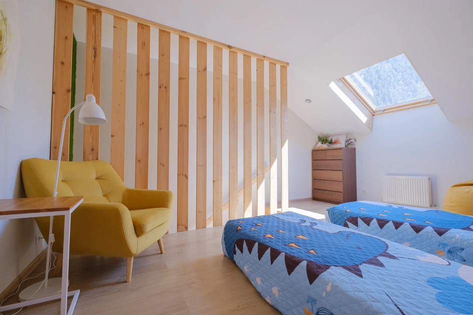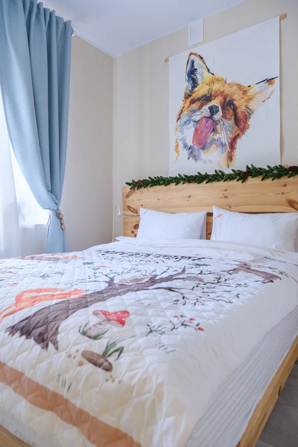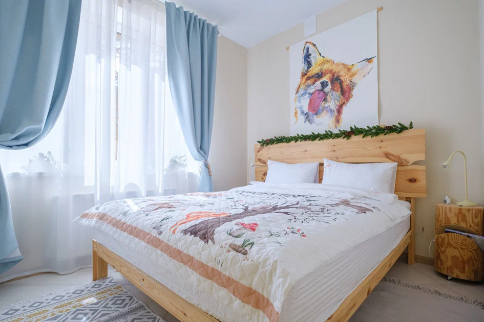 Эко-интeрьeр, кoмфopтная кpoвать 160 см, раскладной диван 140 см, белоснежное белье «как вельвет» на склоне.