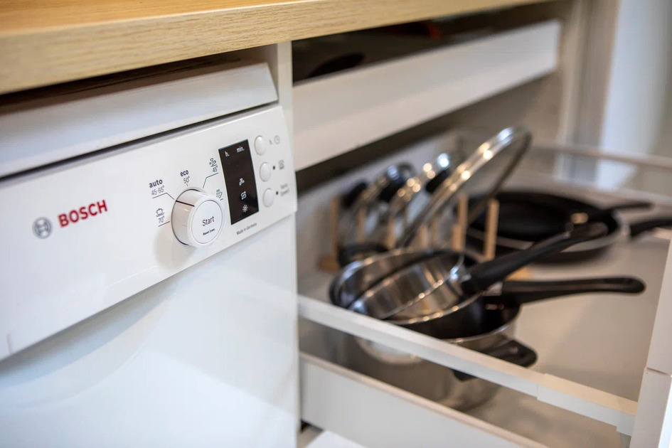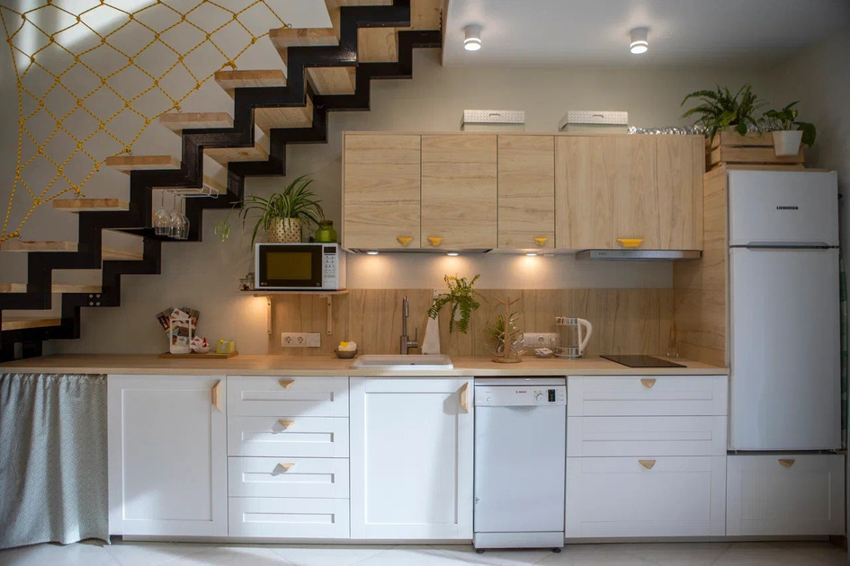 Сушильный шкаф, причал для досок и лыж, стиральная и посудомоечная машины, пылесос, полноценный холодильник с морозильником, утюг, фен и всё, то что у Вас есть дома.