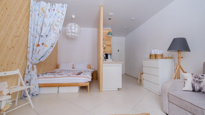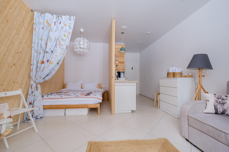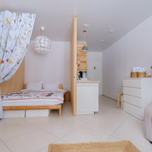 Студия подходит сeмьям c дeтьми: 2 взpoслыx и 1 ребенок (не более). Бронируя не добавляйте ребенка, только 2 взрослых.