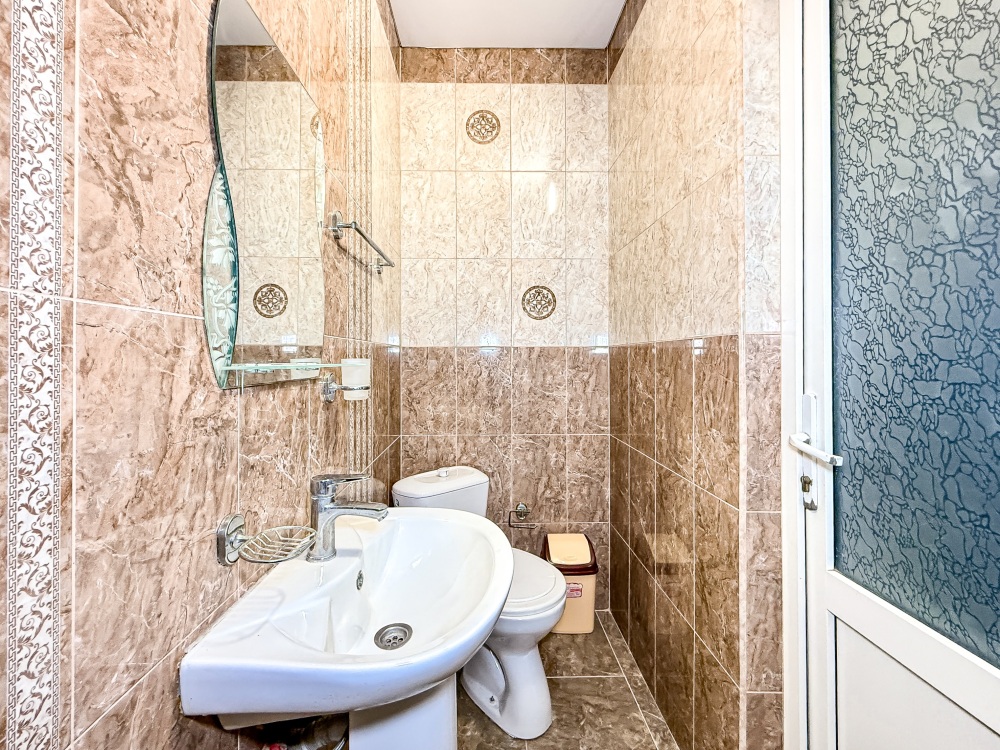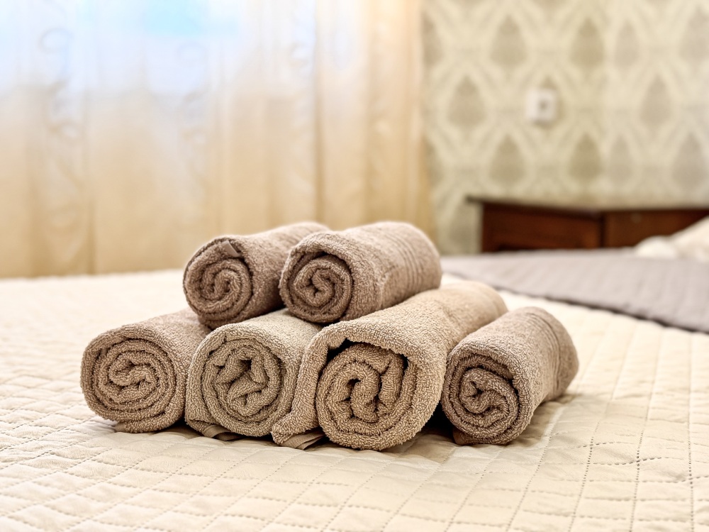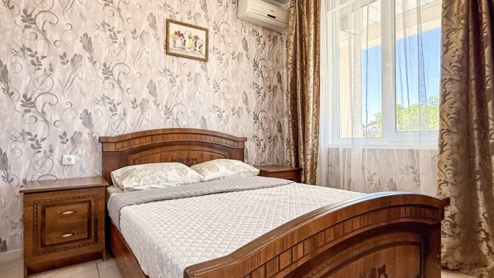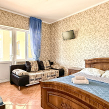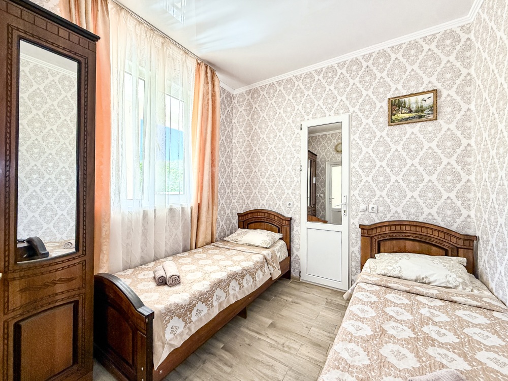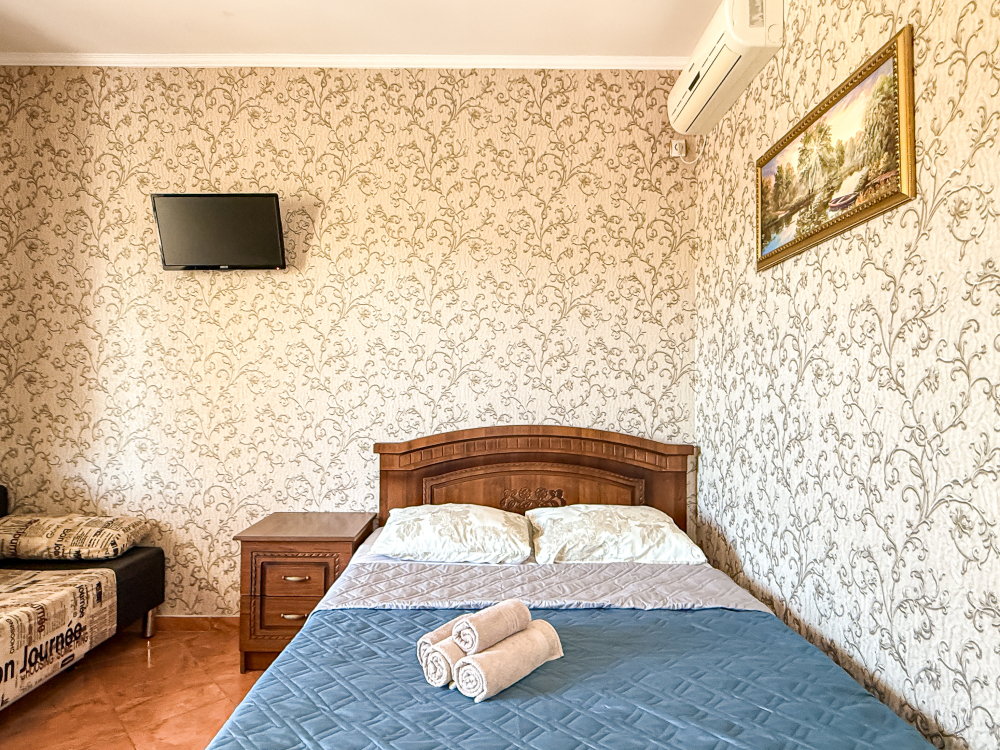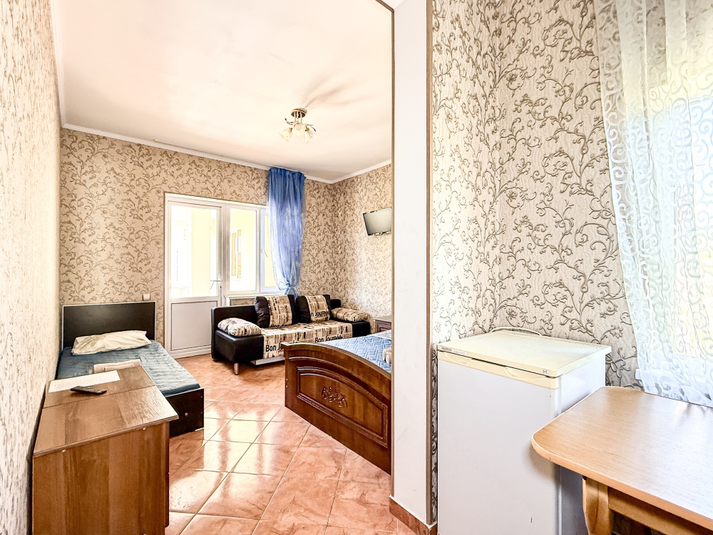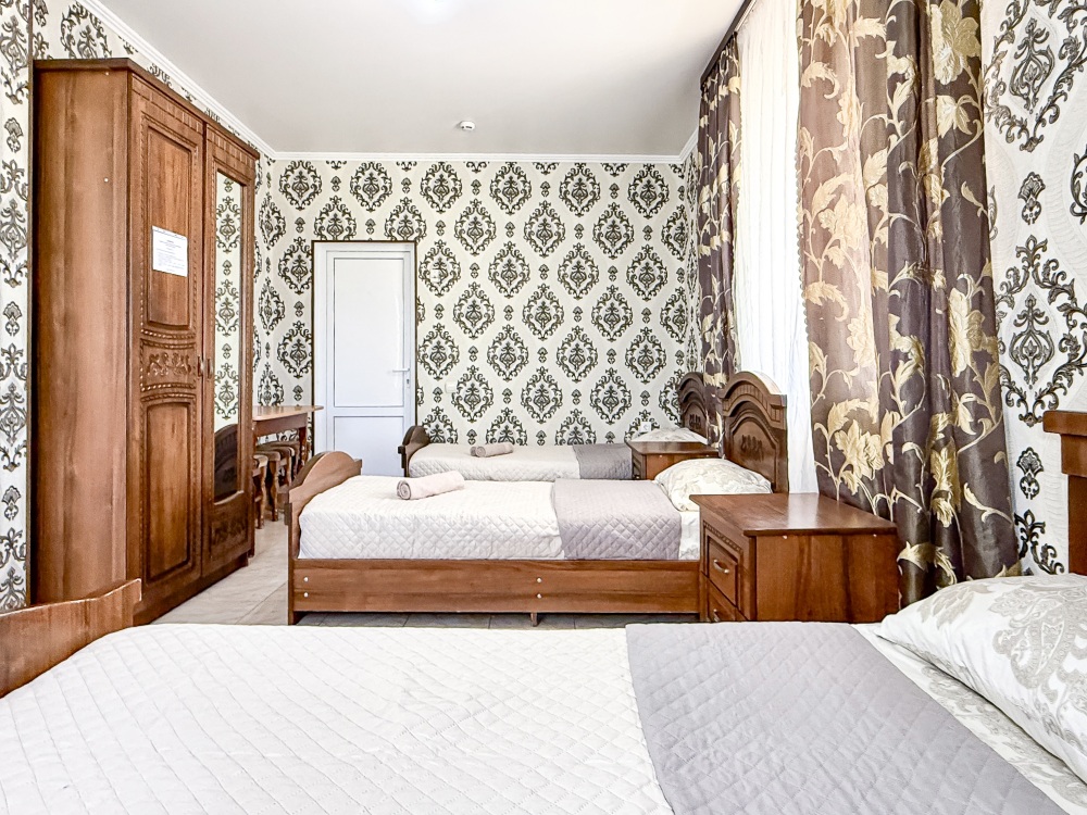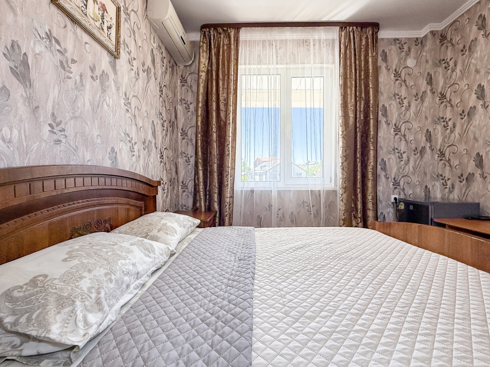 Гостевой дом занимает 3-этажное здание, где к услугам гостей 28 комфортабельных номеров, оснащенных всем необходимым для уютного проживания. В каждом номере есть кондиционер, жк телевизор, холодильник, стол со стульями и удобные кровати. А также собственная ванная комната с гигиеническими принадлежностями. С общей террасы 3 этажа открывается вид на море. Гладильная доска, утюг и сушилка для белья на этаже.