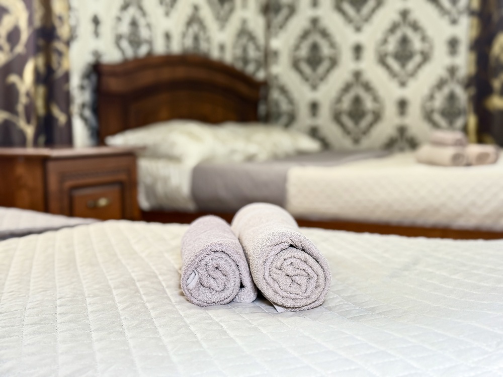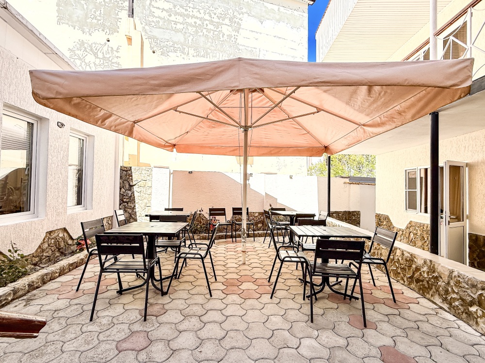 Для Вас большая красивая придомовая территория с зоной отдыха на свежем воздухе (беседка, столики, мангал) с бассейном и детской площадкой. Бесплатная парковка возле дома и платная на территории. В гостевом доме есть столовая и буфет. Уборка номеров 2 раза в неделю, смена белья один раз в 5 дней или по запросу гостя.