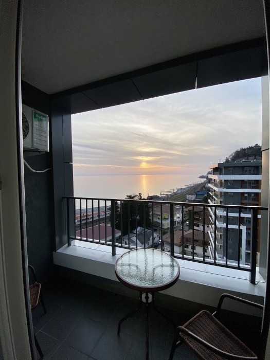 На кухне есть все необходимое для приготовления: посуда, кастрюли, сковорода, столовые приборы. Балкон с мебелью и видом на море.